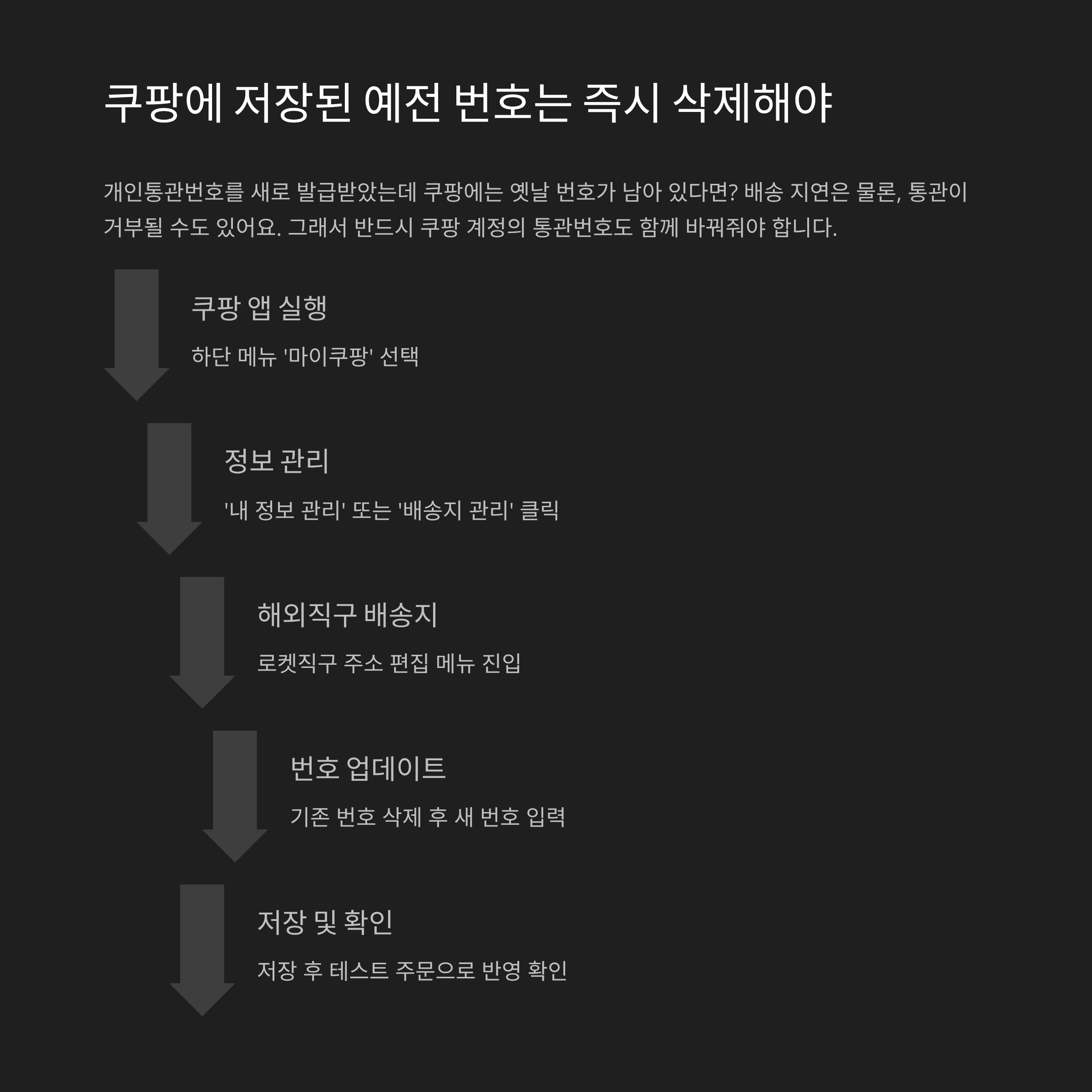 개인통관번호를 새로 발급받았는데 쿠팡에는 옛날 번호가 남아 있다면?