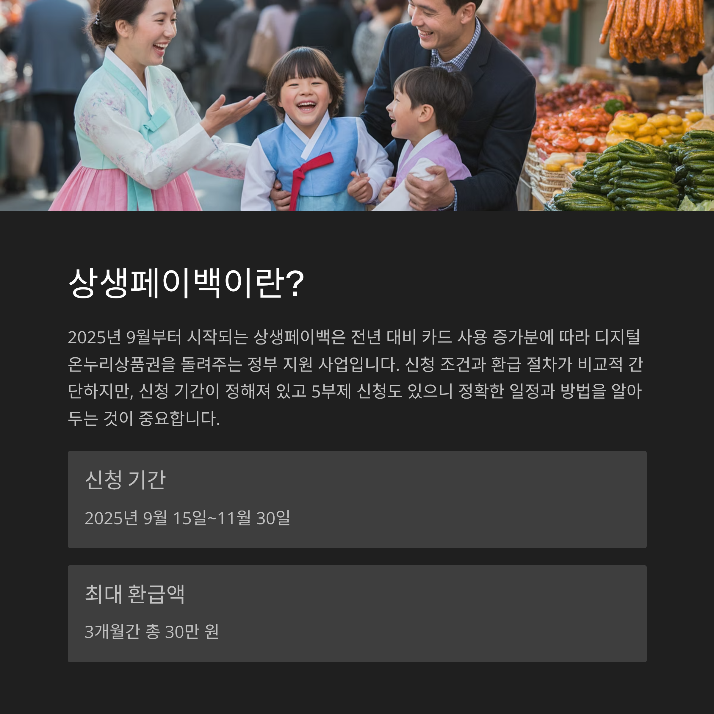 | 상생페이백 2025 신청 방법과 환급 조건 총정리 (0) | 2025.09.22 |