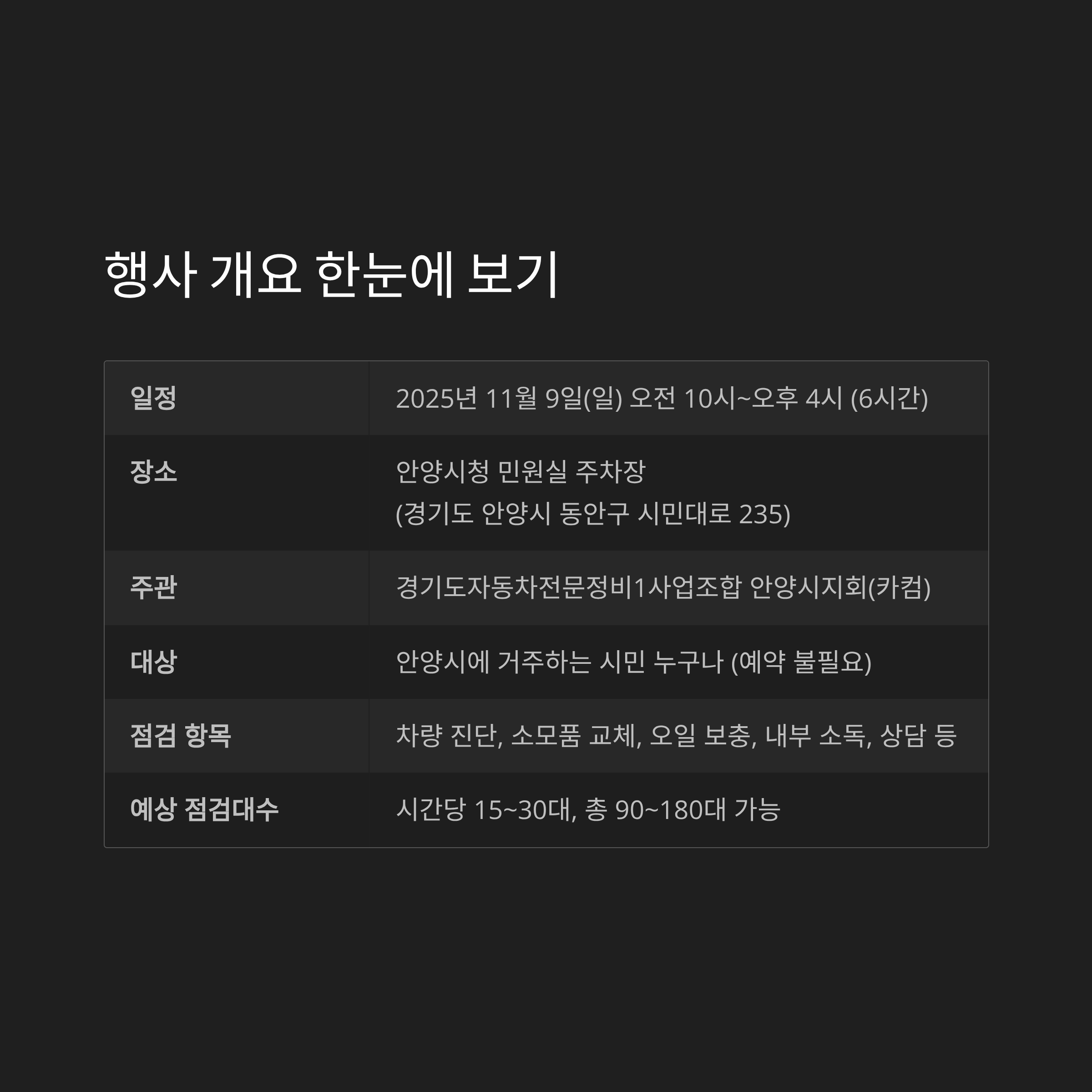| 안양시 자동차 무상 점검의 날, 시민을 위한 차량 안전 캠페인 (0) | 2025.11.08 |