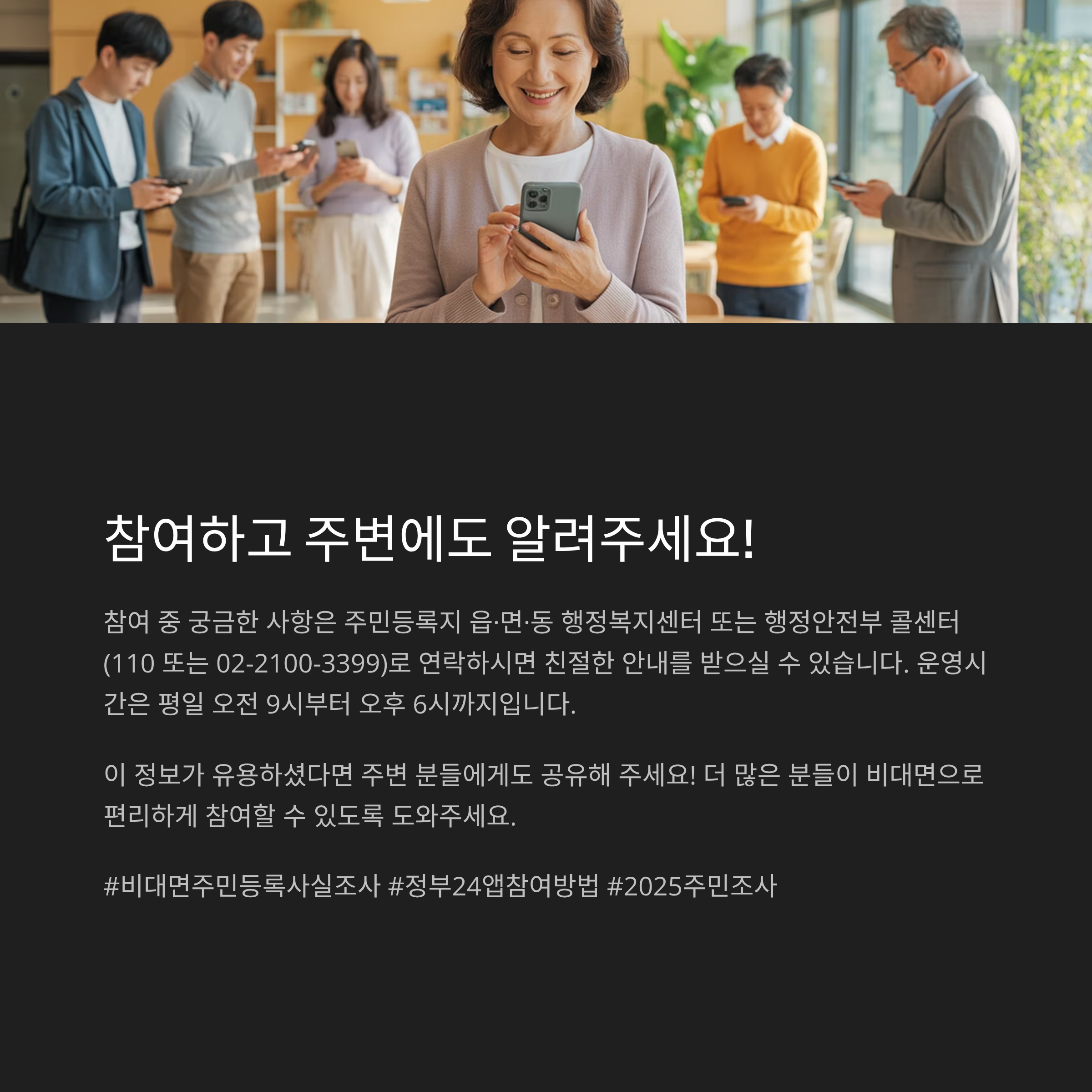 참여 중 궁금한 사항은 주민등록지 읍·면·동 행정복지센터 또는 행정안전부 콜센터(110 또는 02-2100-3399)로 연락하시면