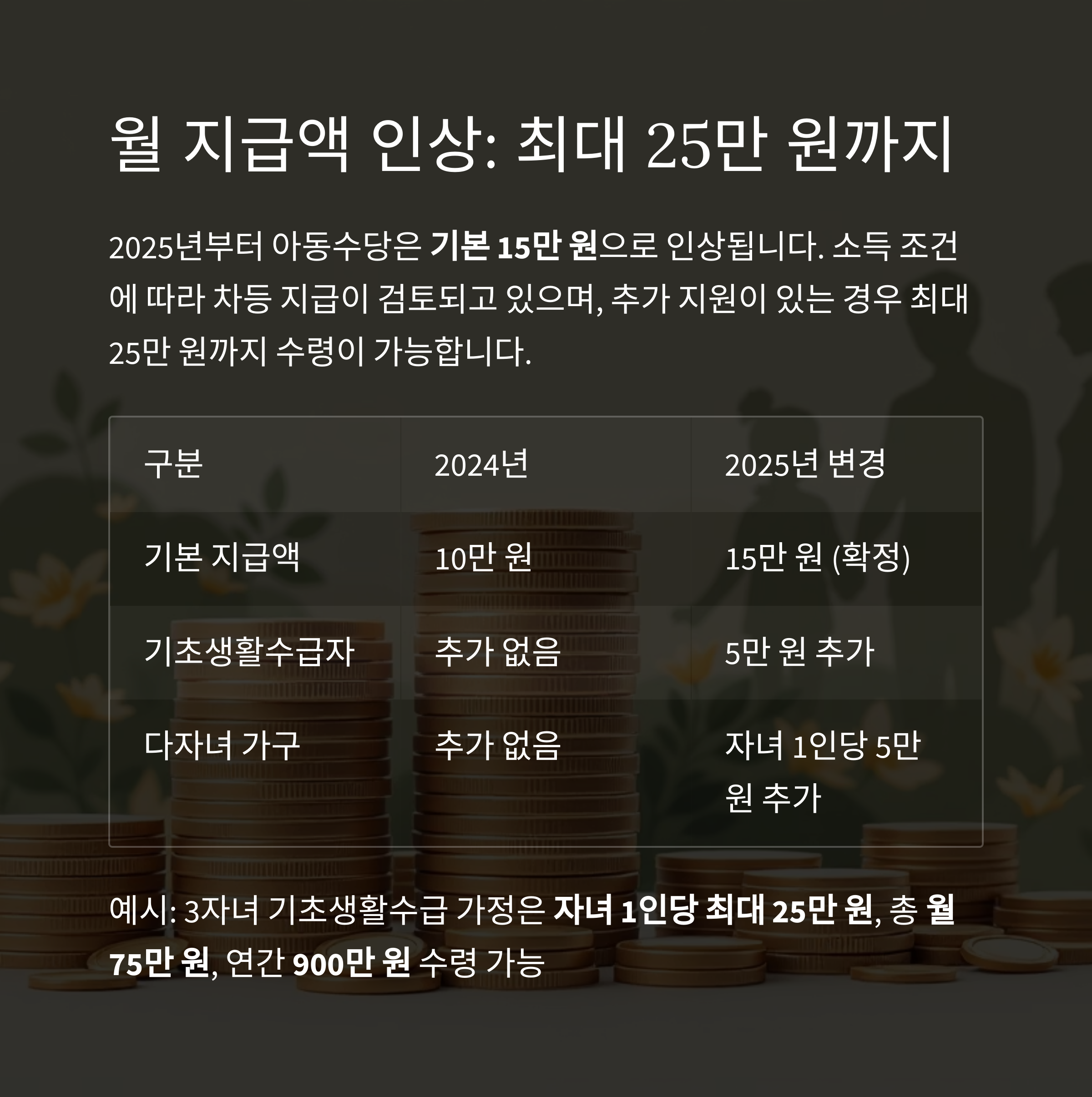 2025년에는 둘째아 이상에 대한 지원금이 확대되고,