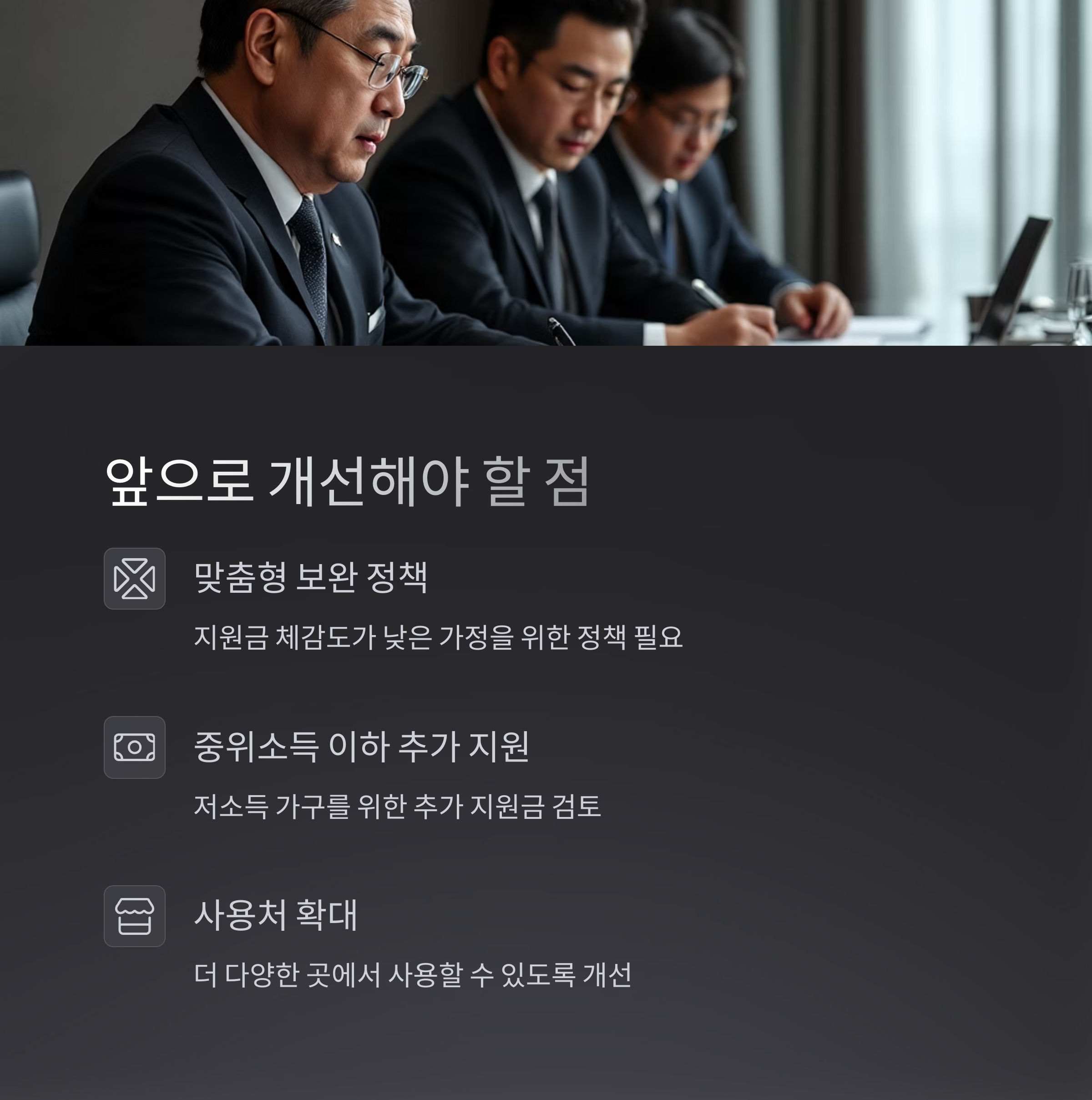 사용처 확대 정책이 앞으로 중요한 개선 과제가 될 것입니다