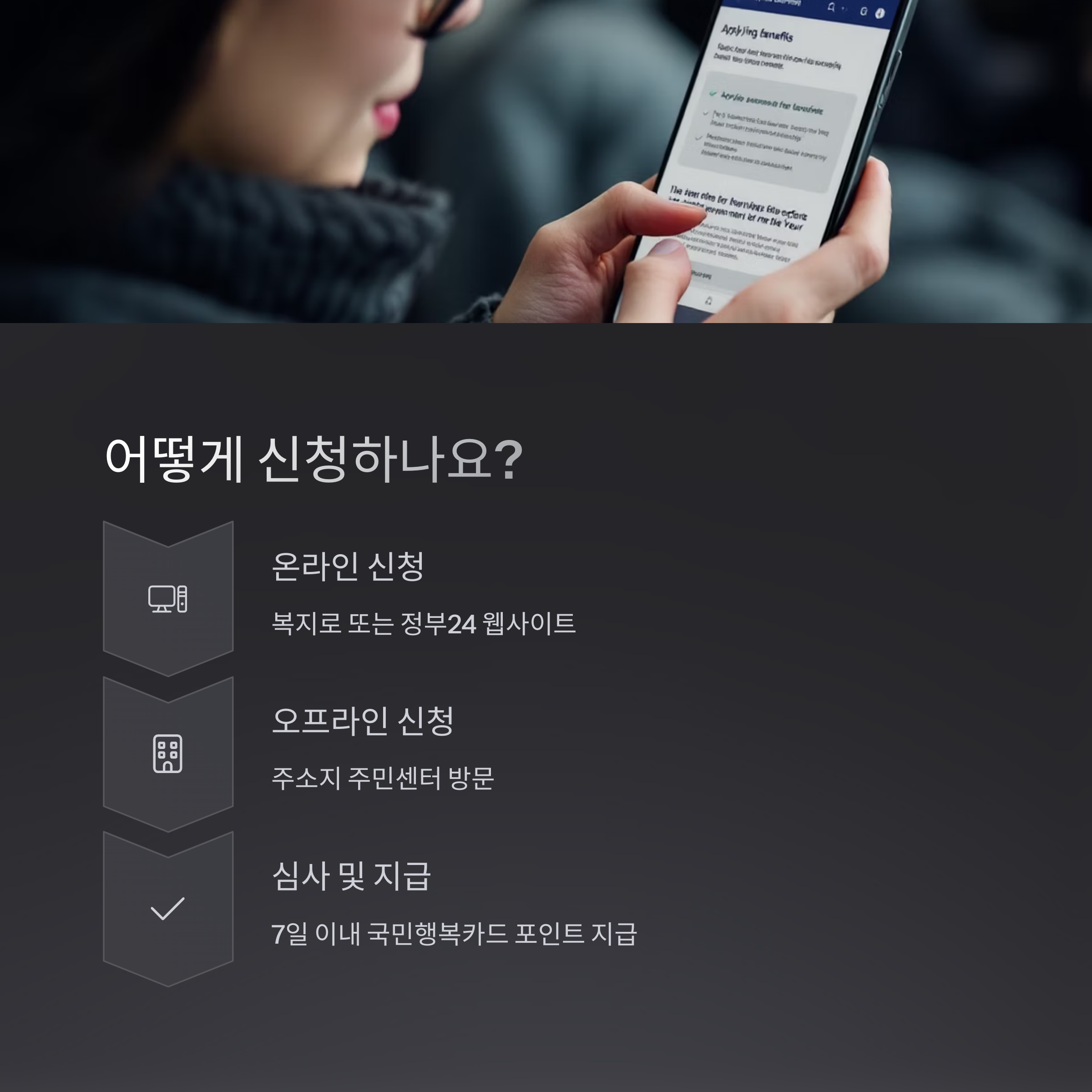 온라인 신청은 복지로(www.bokjiro.go.kr) 또는 정부24(www.gov.kr)에서,