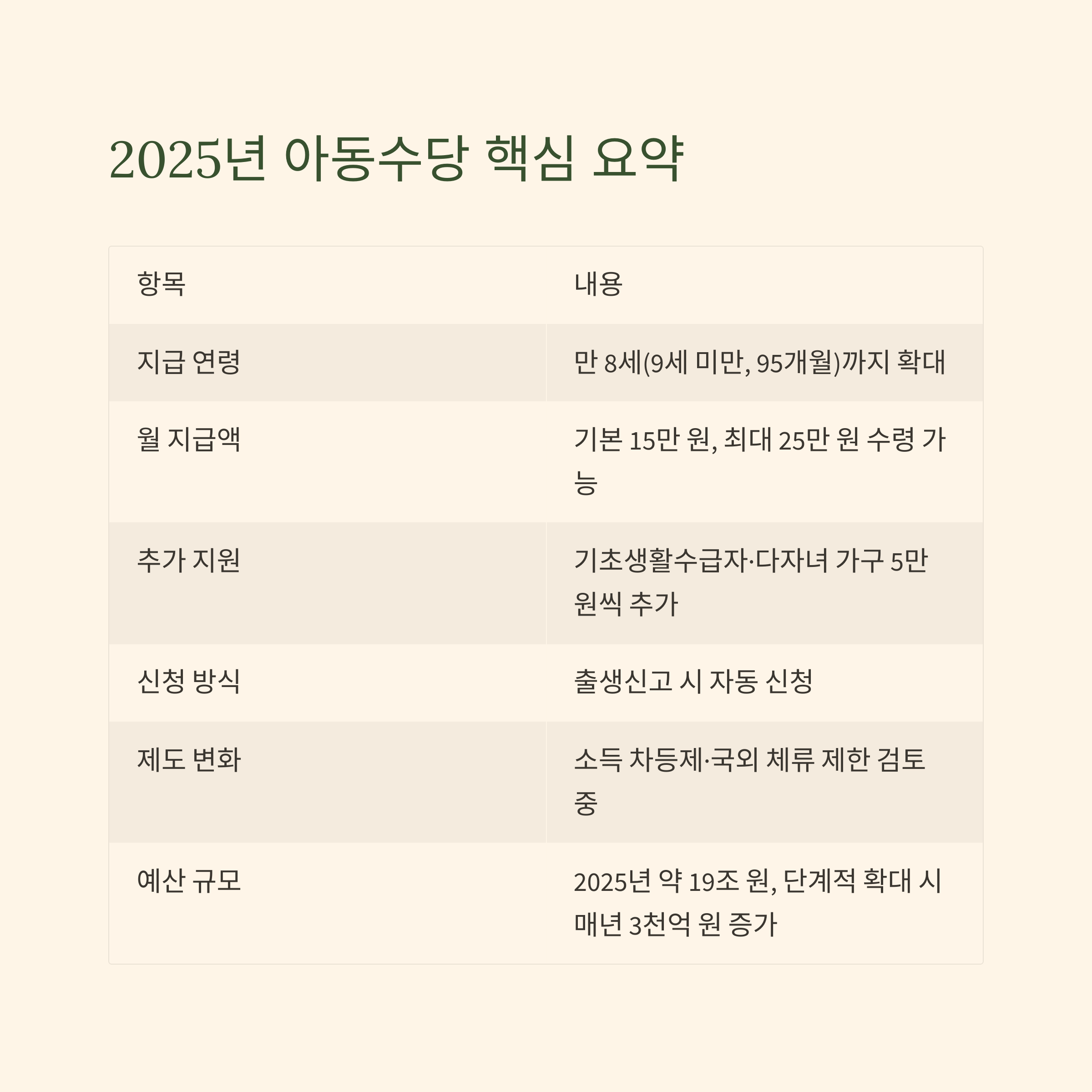 다음 표는 2025년 기준 지원금 규모를 요약한 내용입니다.