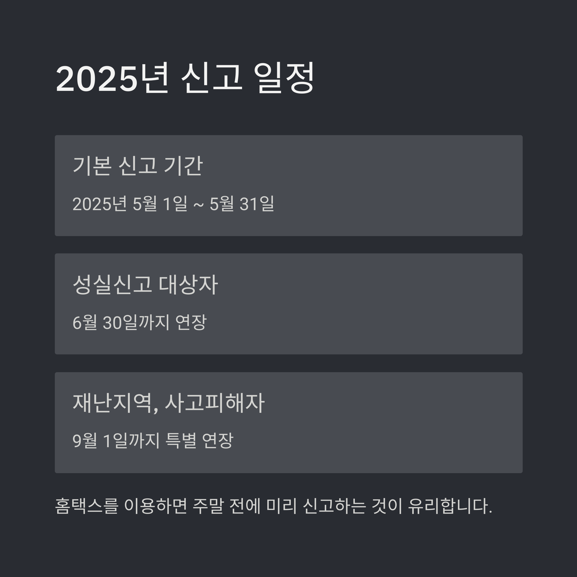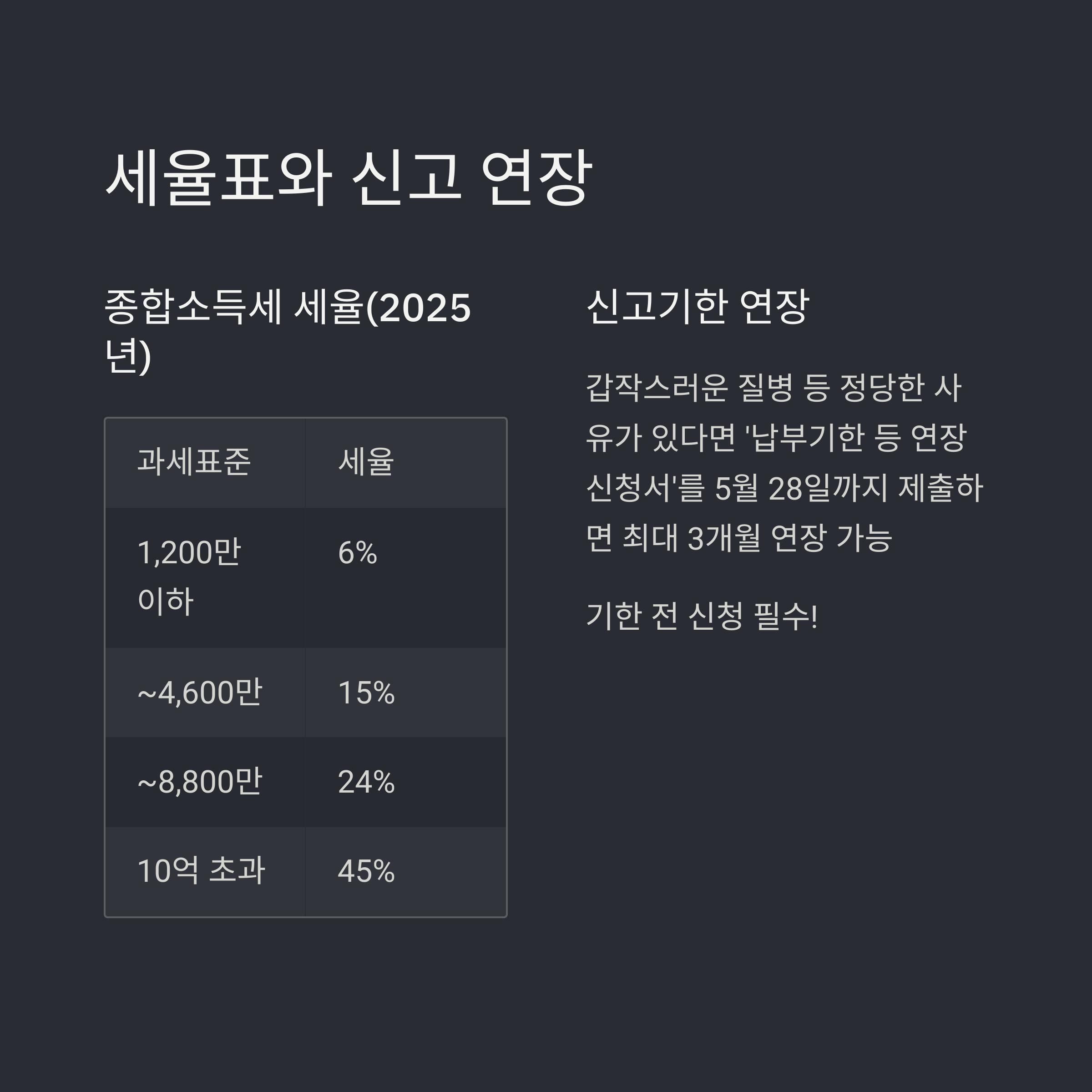| 2025년 종합소득세 신고, 환급까지 놓치지 마세요! (0) | 2025.05.02 |