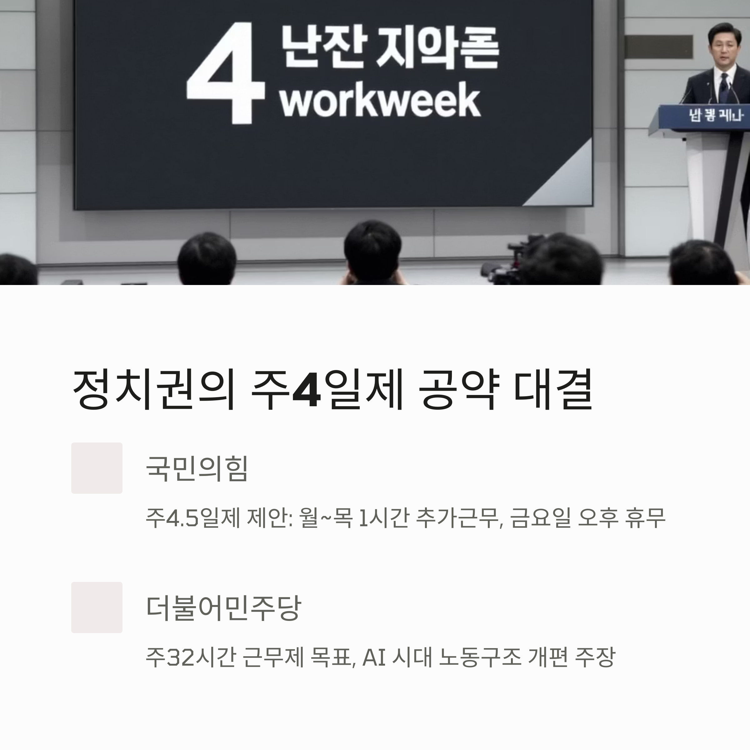 | 2025 주4일제 도입 논의, 대선 앞둔 뜨거운 감자 (0) | 2025.05.03 |