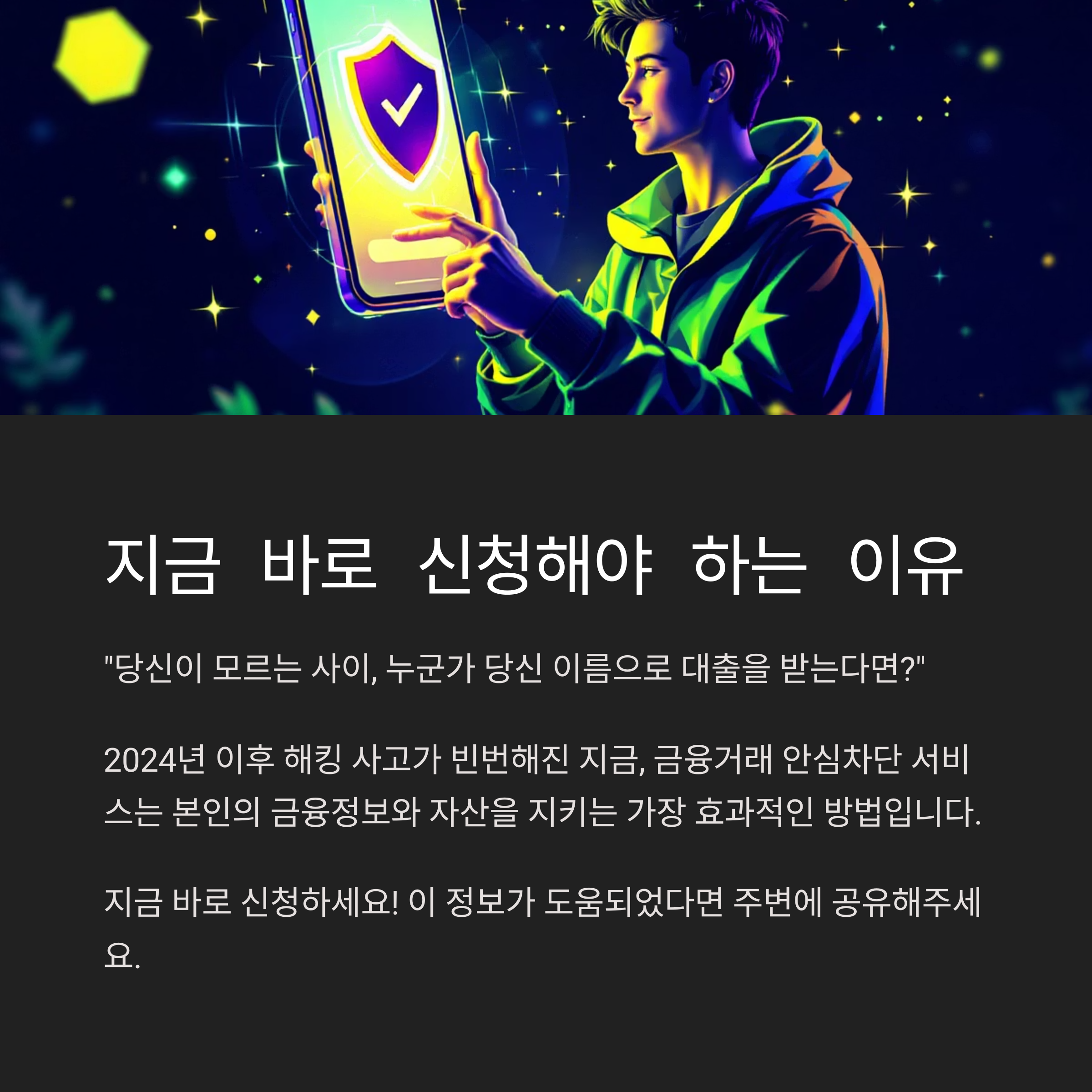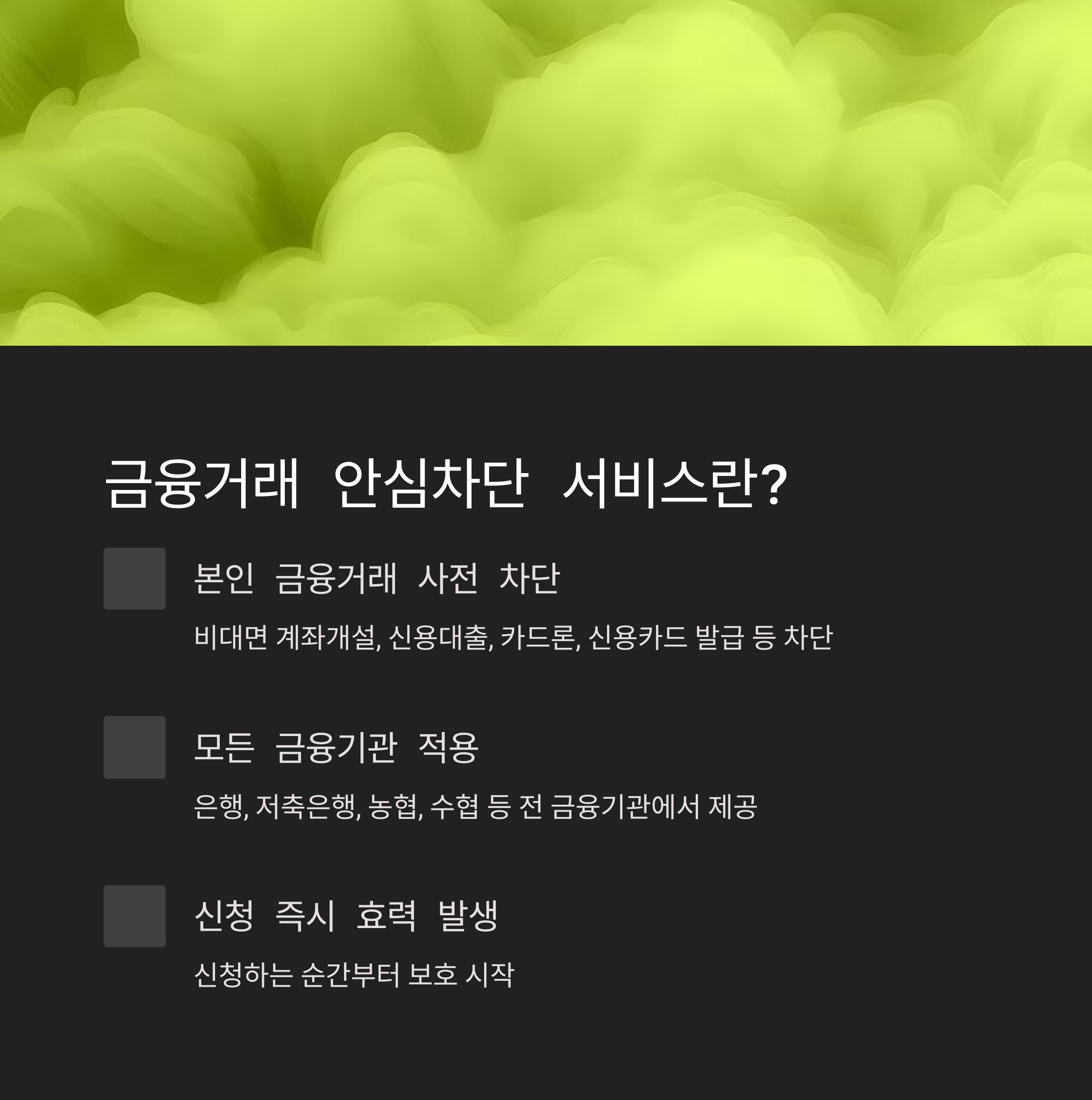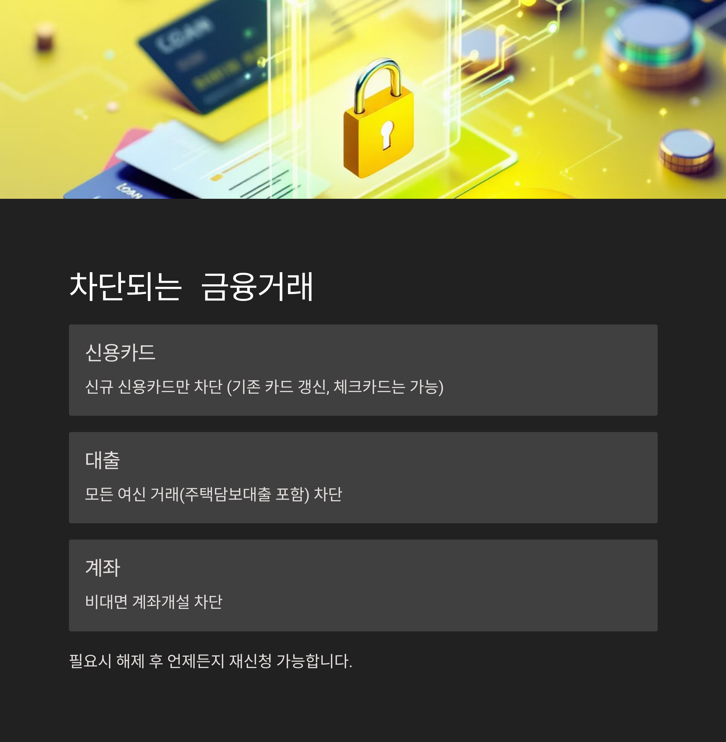 | 금융거래 안심차단 서비스, 지금 바로 신청해야 하는 이유 (0) | 2025.04.29 |