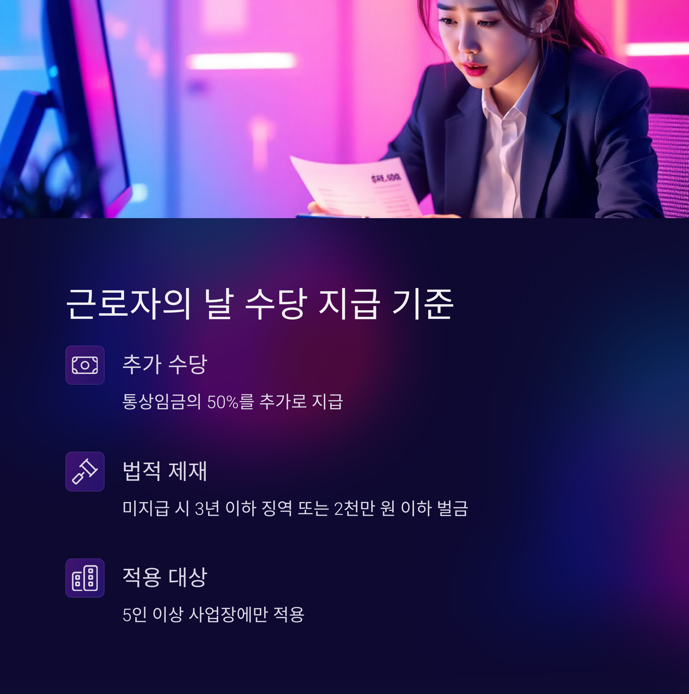 - 미지급 시, 3년 이하 징역 또는 2천만 원 이하 벌금 부과.