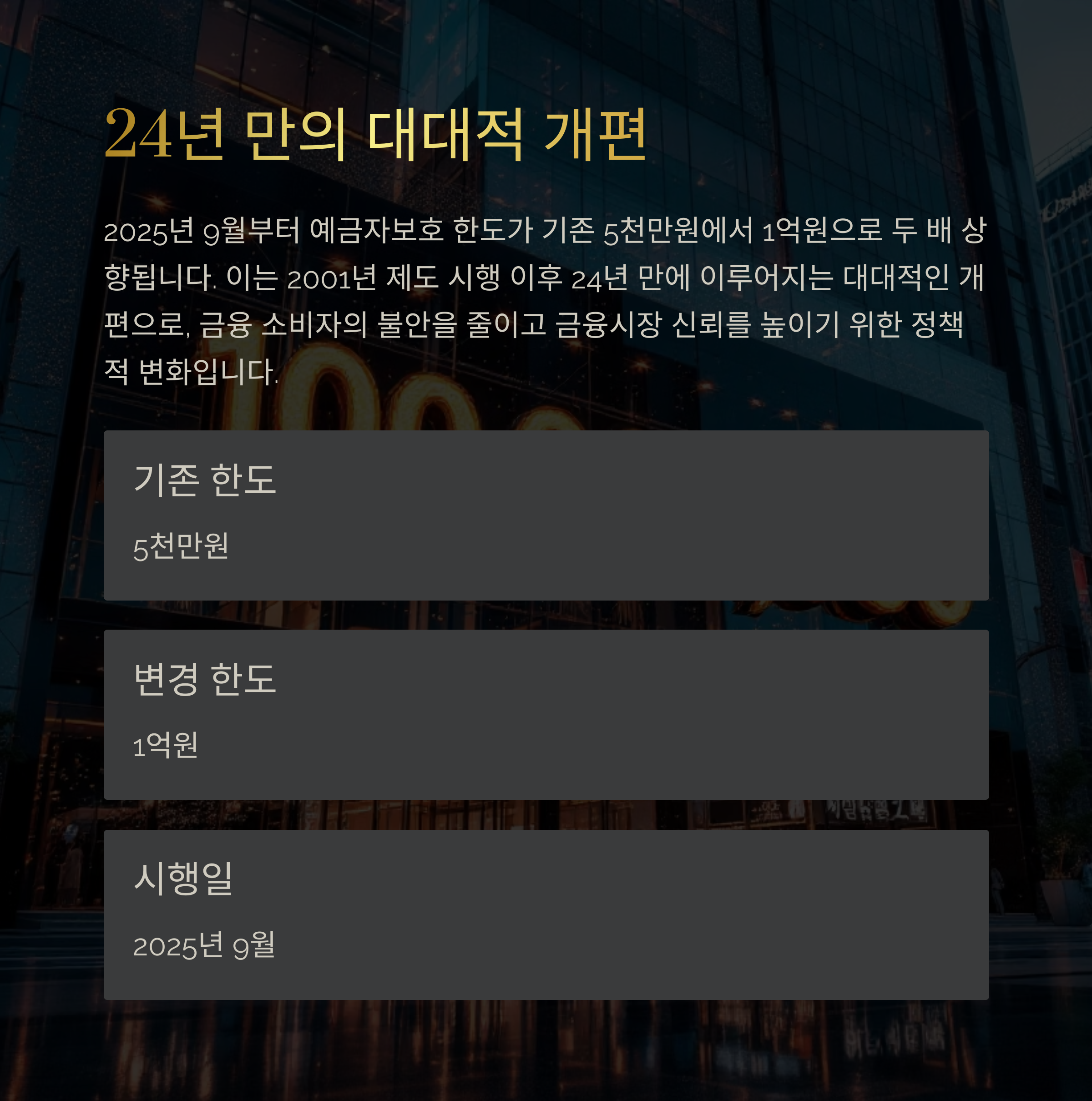 | 2025년 예금자보호 한도 상향: 1억원 보호 시대 개막 (0) | 2025.05.16 |