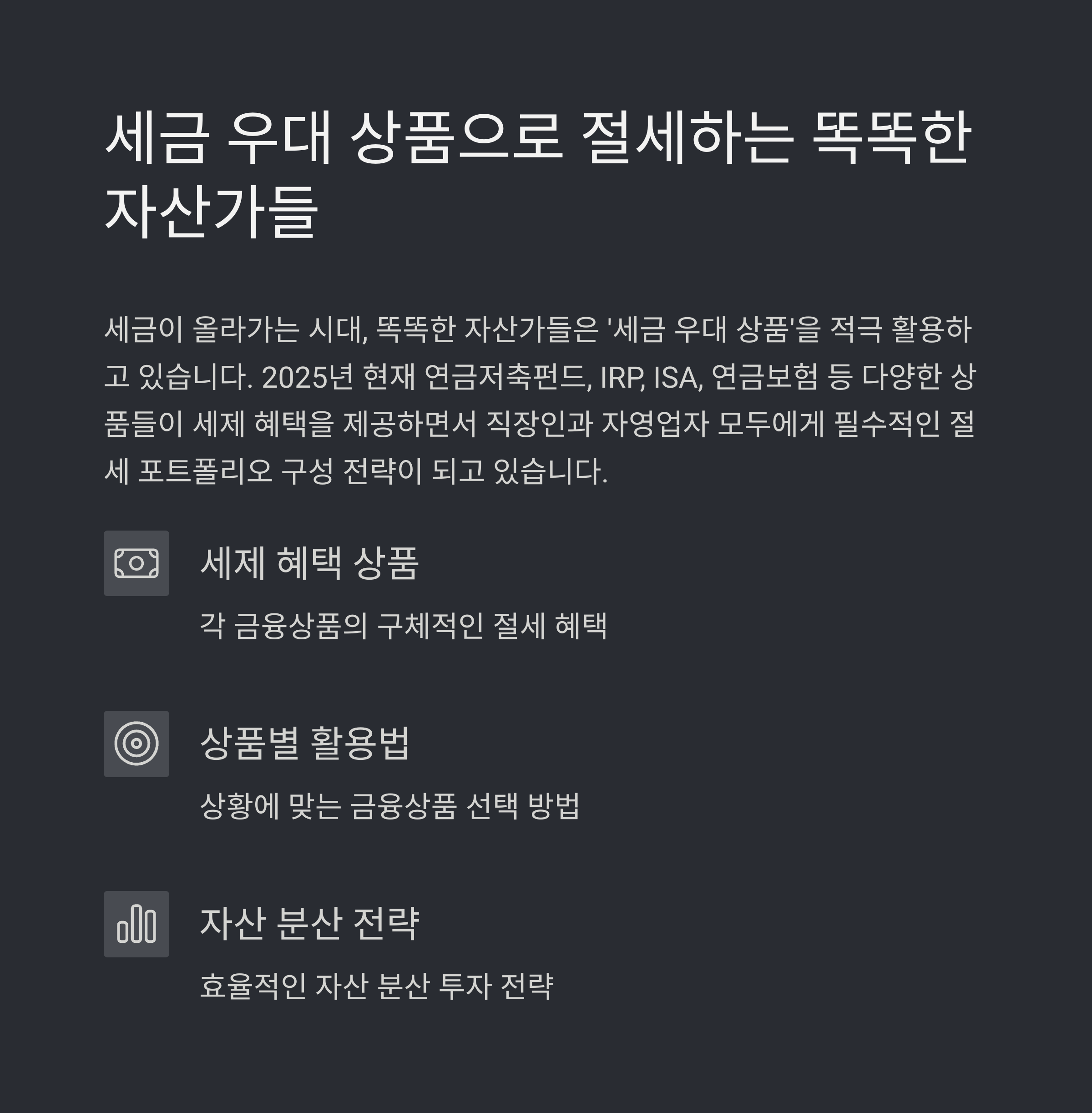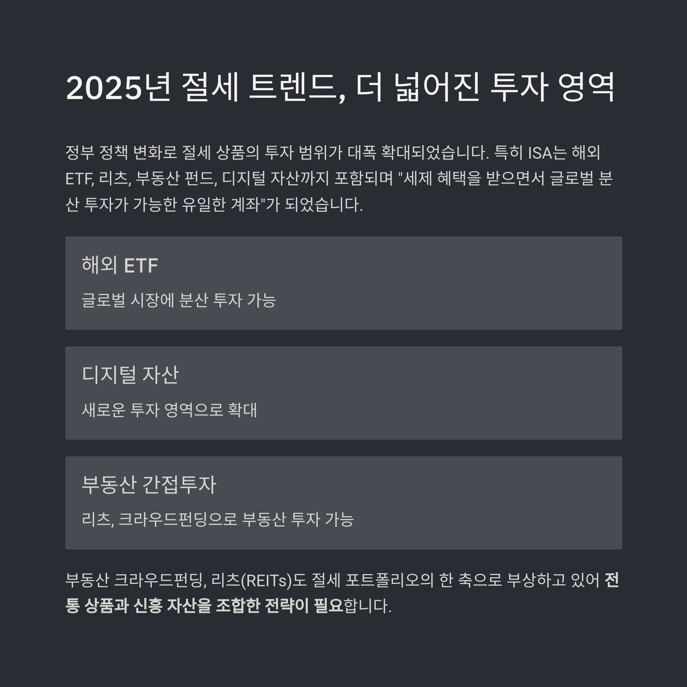| 2025년 절세의 정석, 세금 우대 금융상품으로 만드는 똑똑한 포트폴리오 (1) | 2025.05.16 |