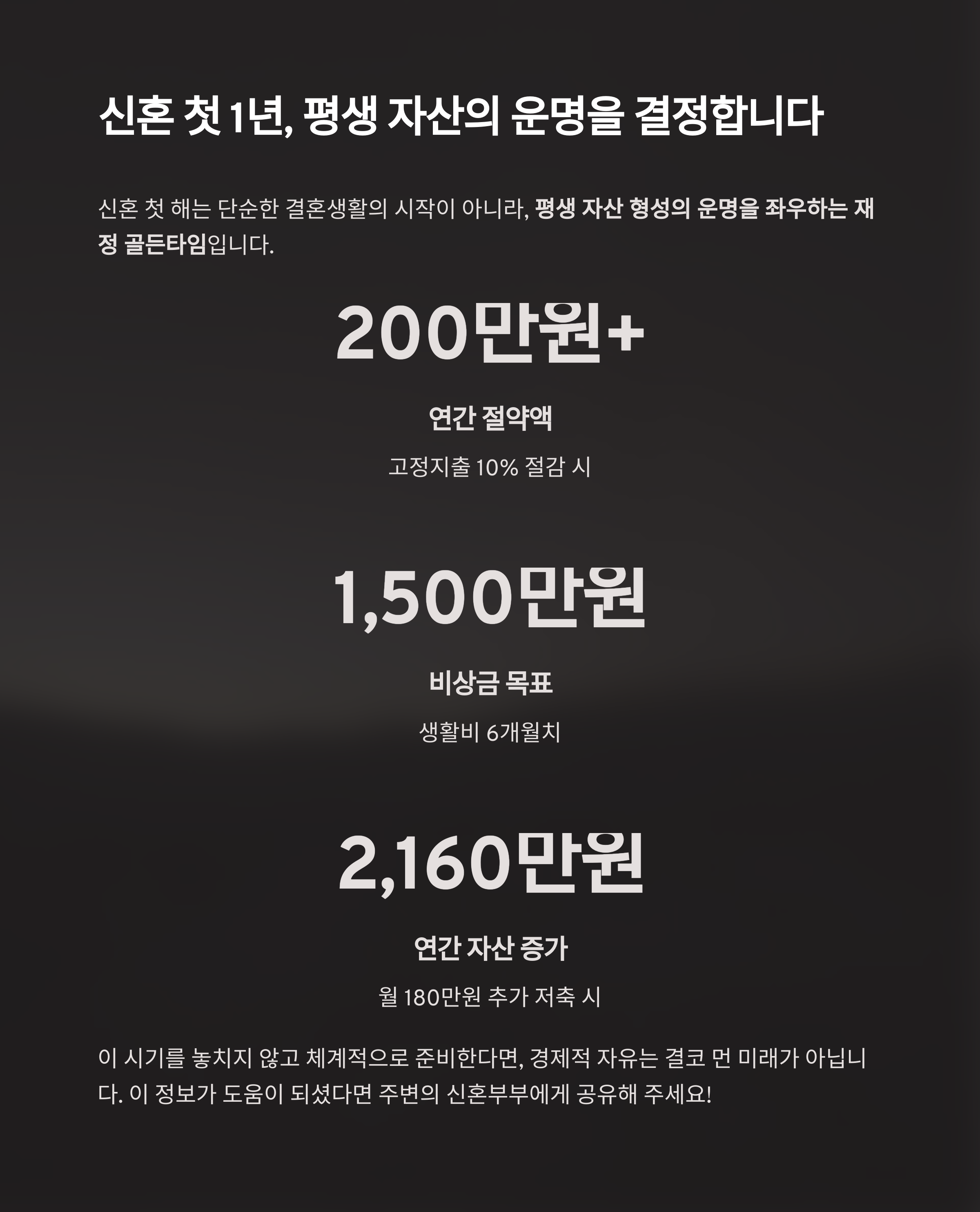 | 신혼부부 재테크, 첫 1년이 미래 자산을 결정한다 (0) | 2025.05.17 |
