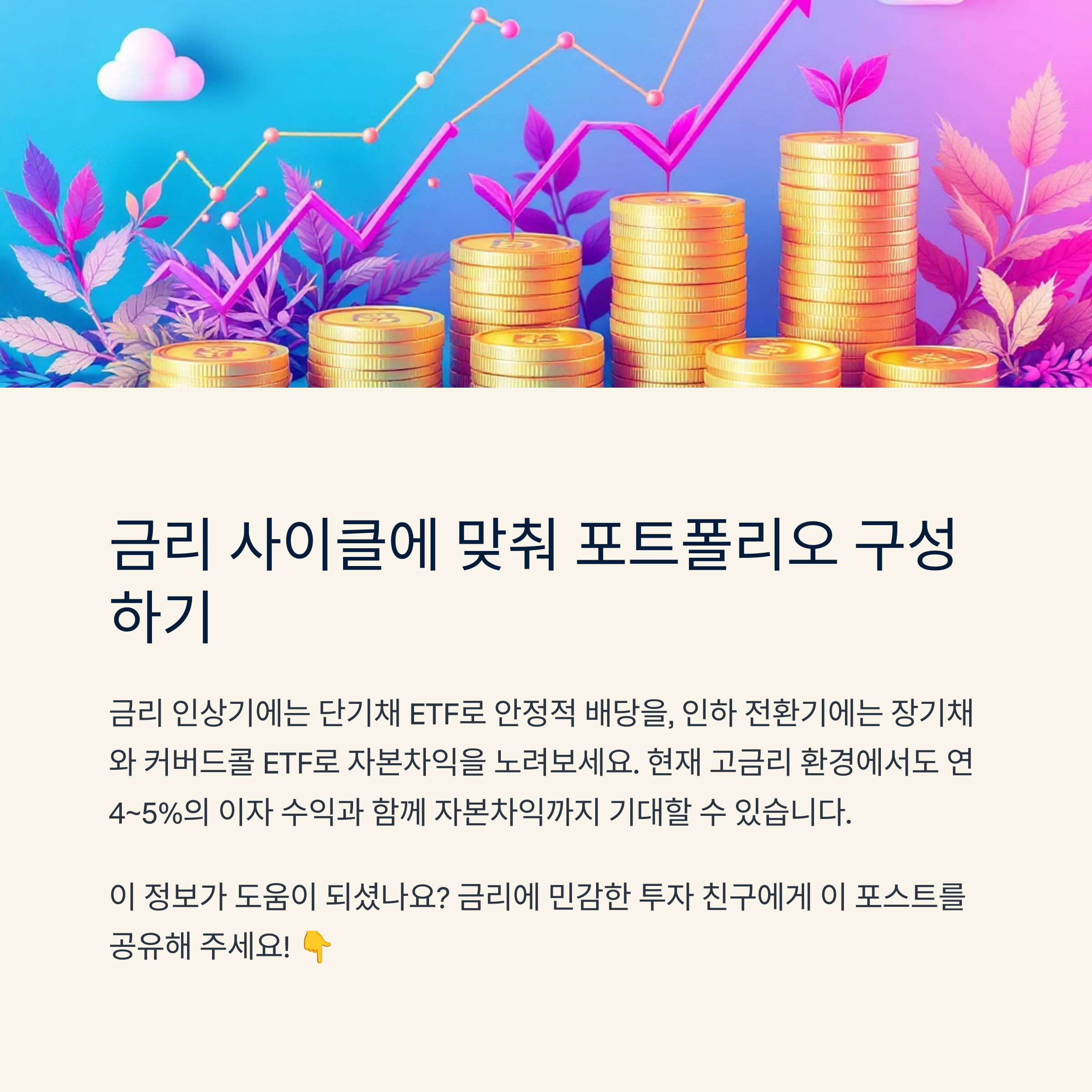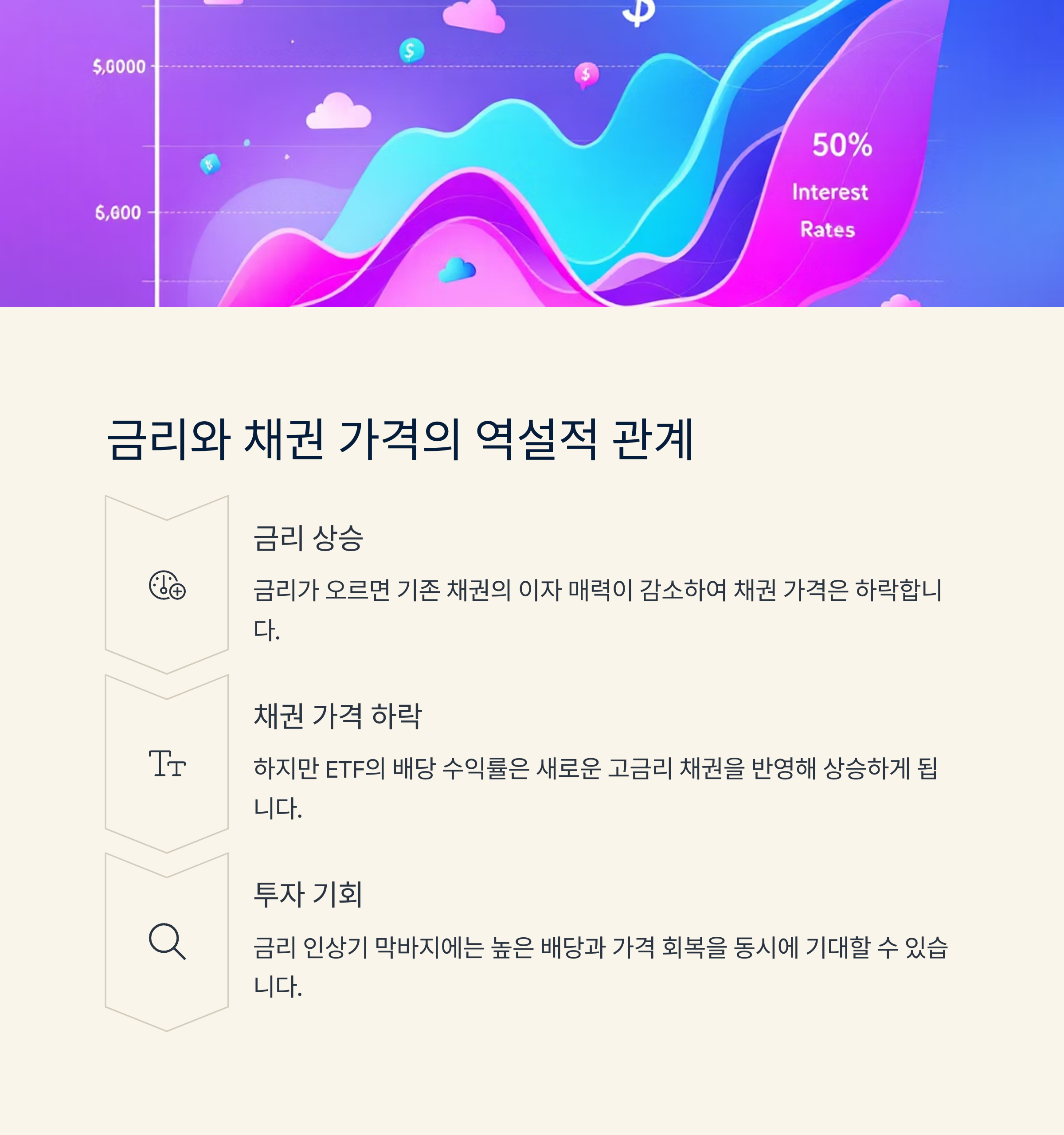 특히 금리 인하기에 들어서면 채권 ETF 가격 상승에 따른 자본차익도 기대할 수 있습니다.