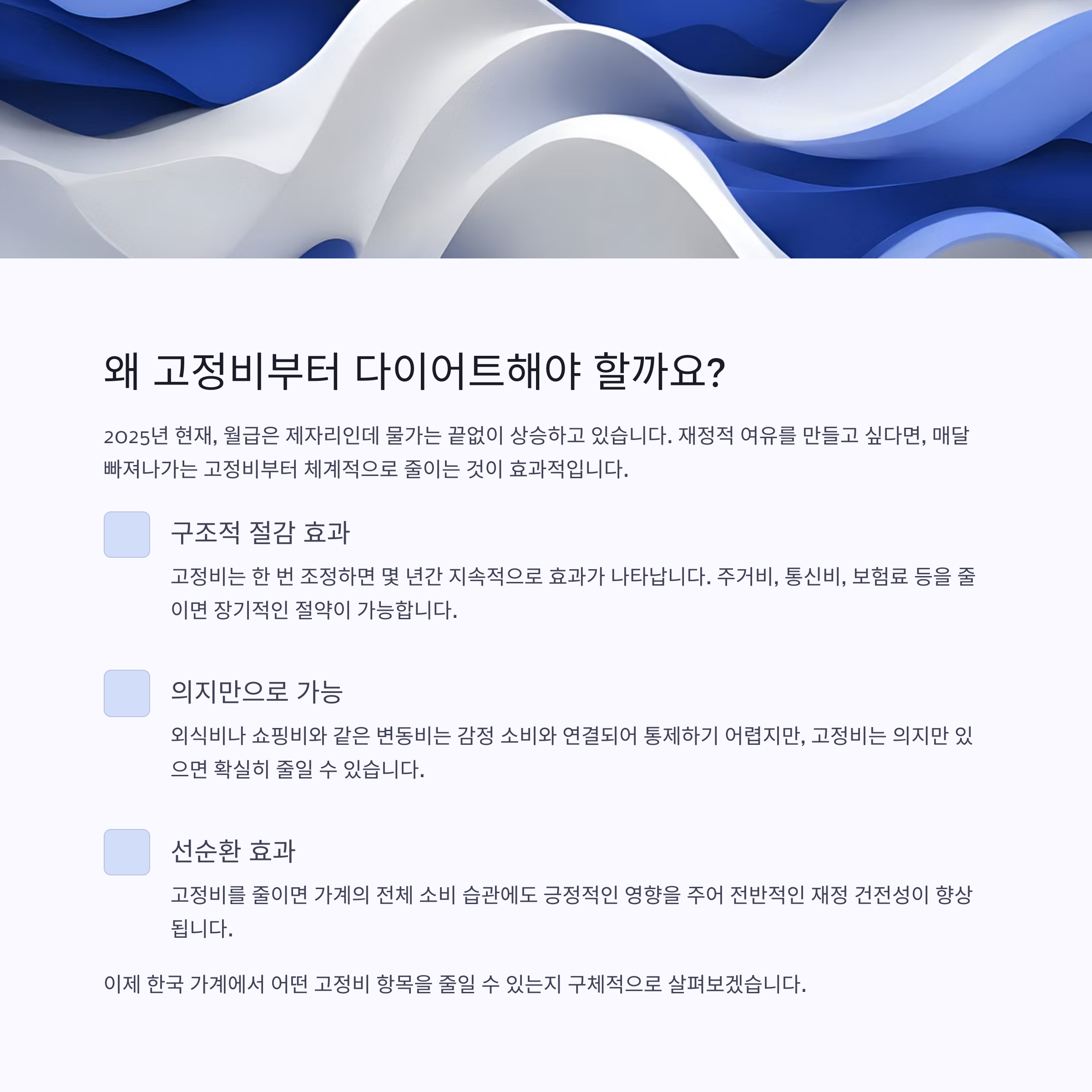 | 2025년판 고정비 다이어트 전략, 1년 300만 원 절약의 비밀 (0) | 2025.07.02 |
