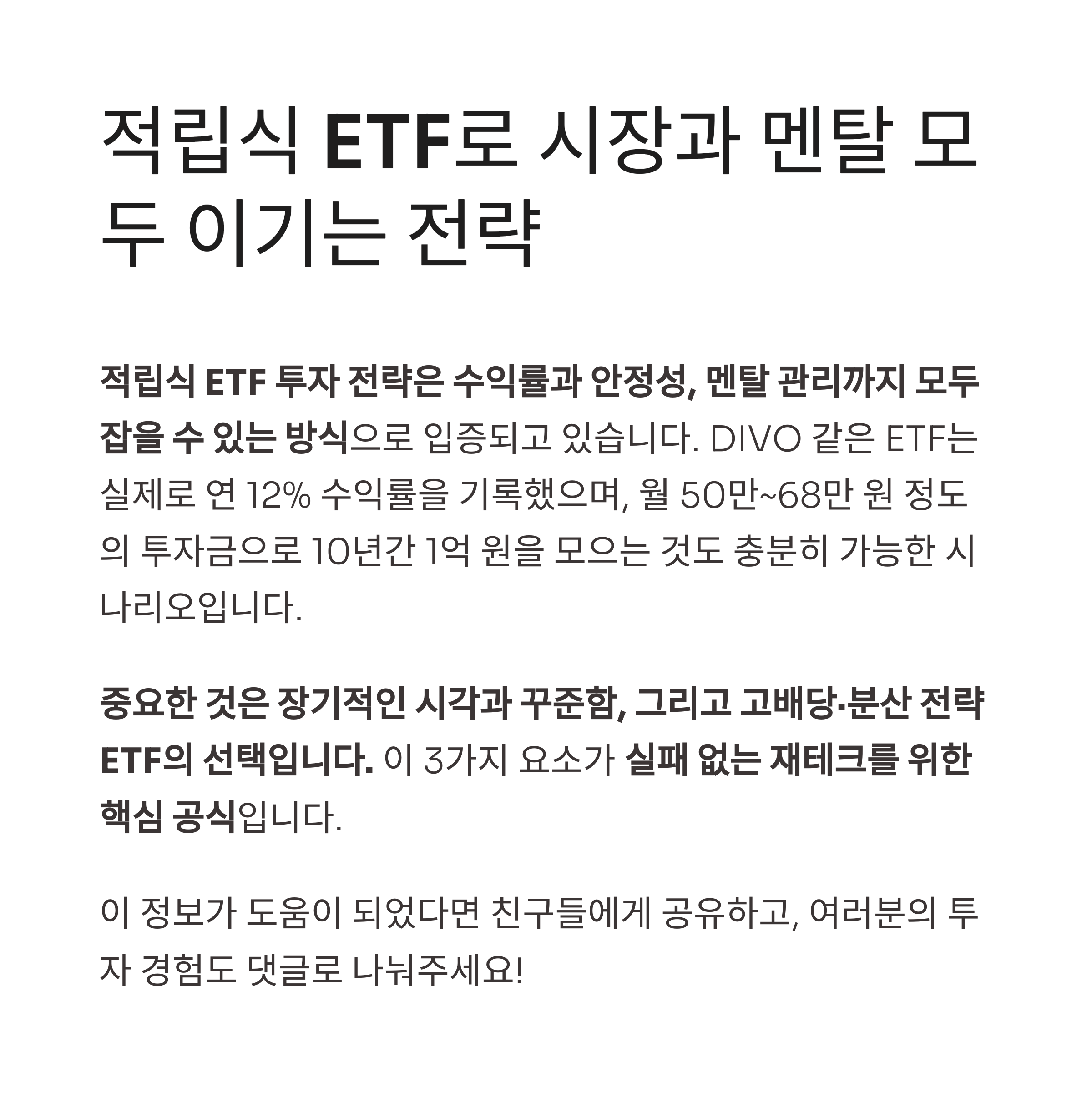 | 추천 전략 | 월별 분할 매수, 연금계좌 활용 |