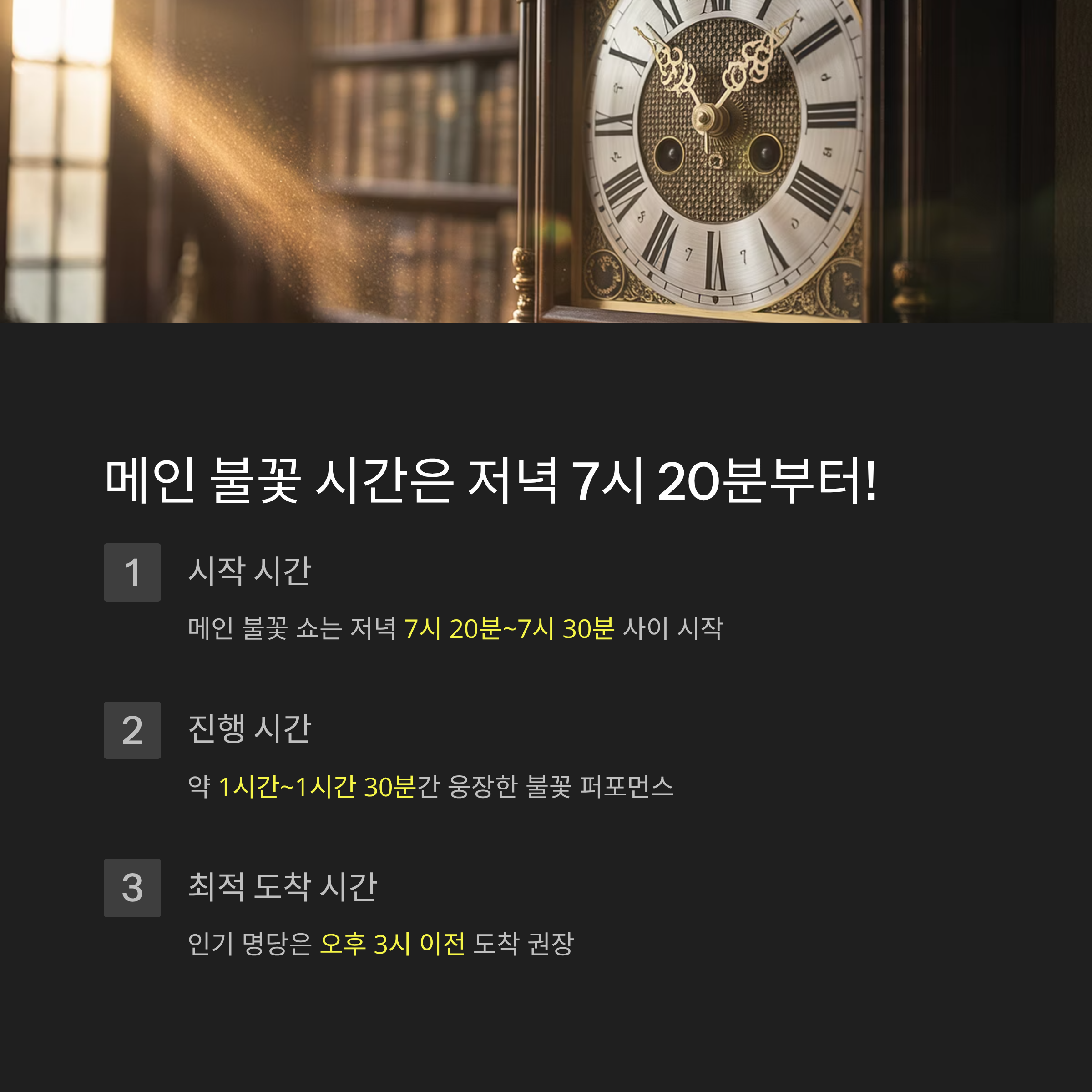 메인 불꽃 시간은 저녁 7시 20분부터!