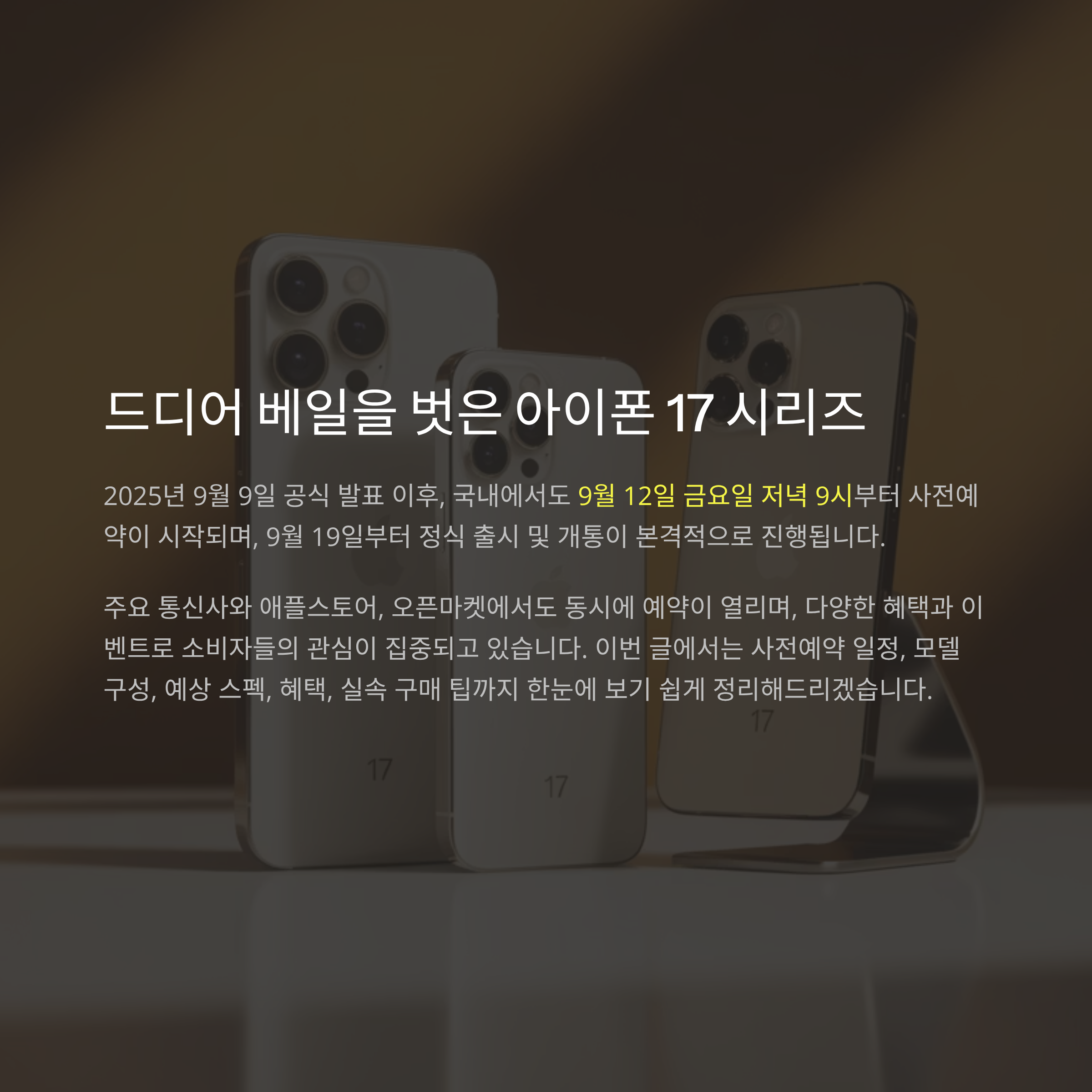 | 아이폰 17 사전예약, 혜택부터 일정까지 총정리 (0) | 2025.09.14 |