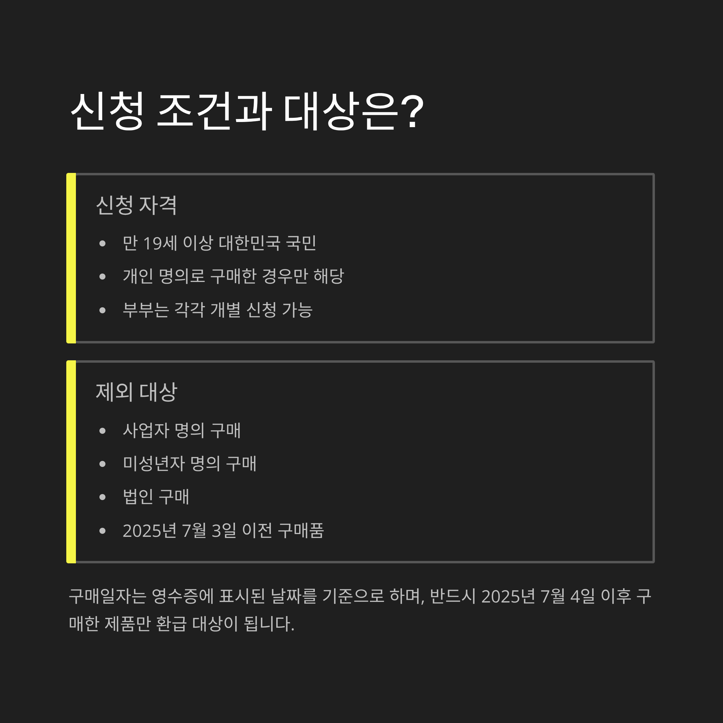 2025년 7월 4일 이후에 1등급 가전을 구입한 대한민국 국민이면 누구나 신청 가능합니다.