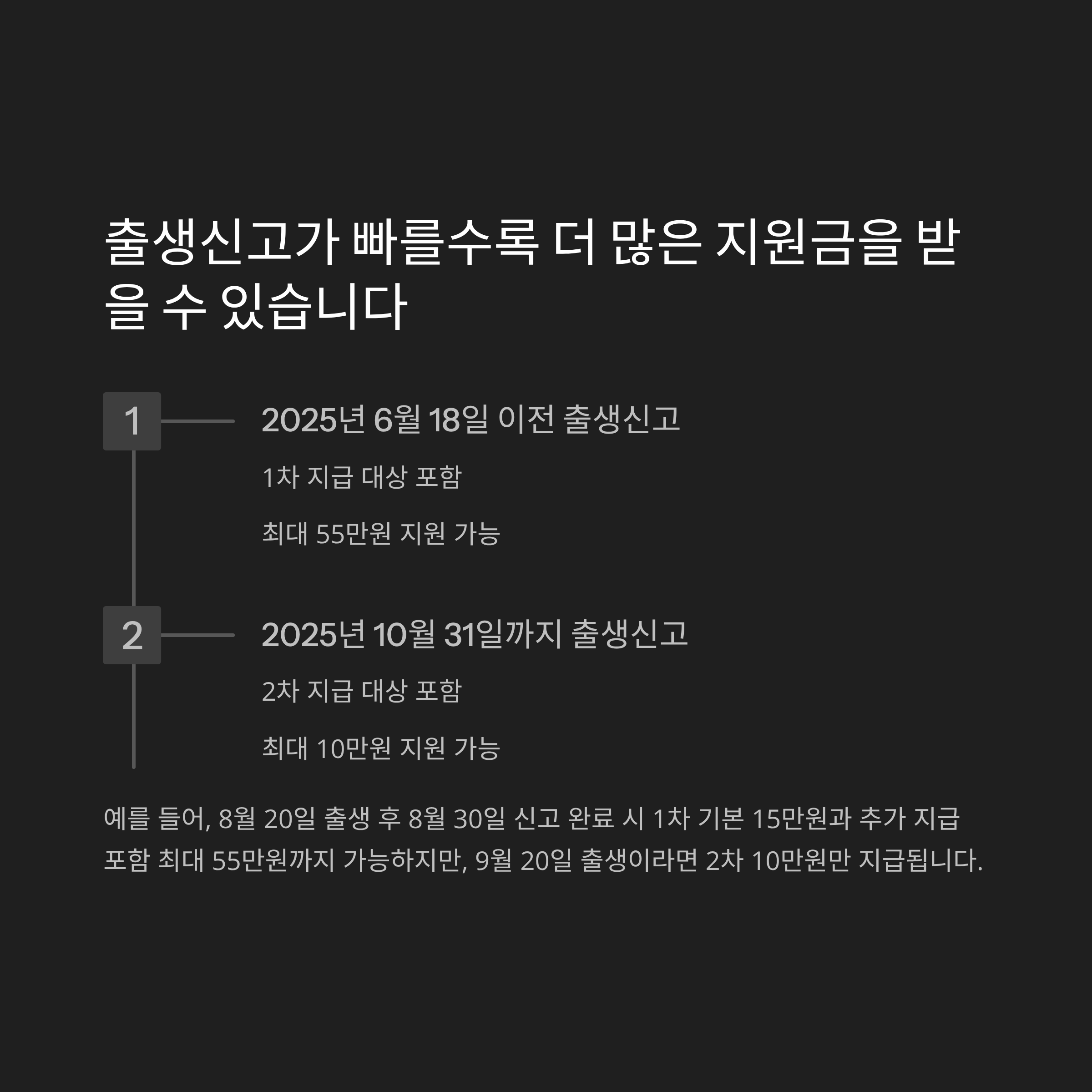 이후 출생했더라도 10월 31일까지 신고가 완료되면 2차 지급 대상이 됩니다.