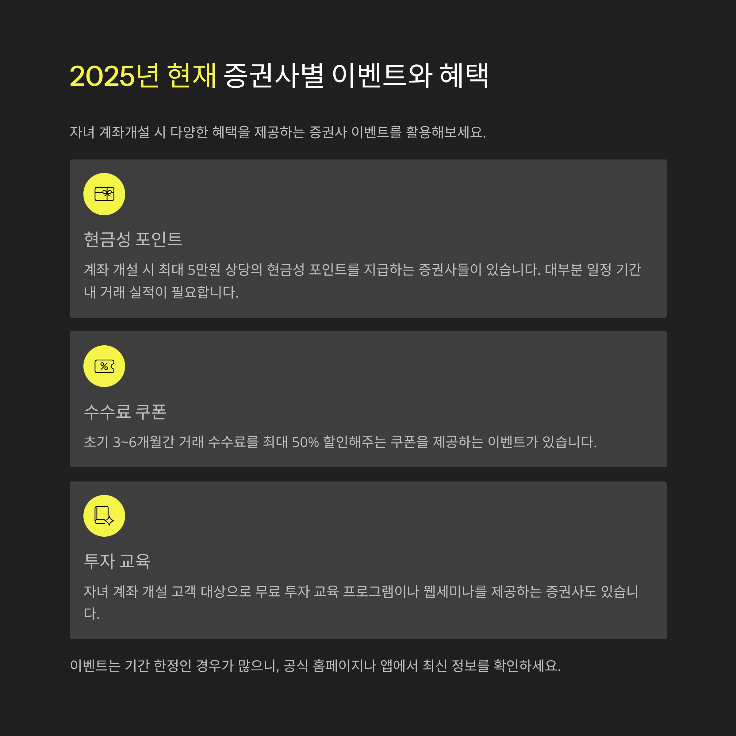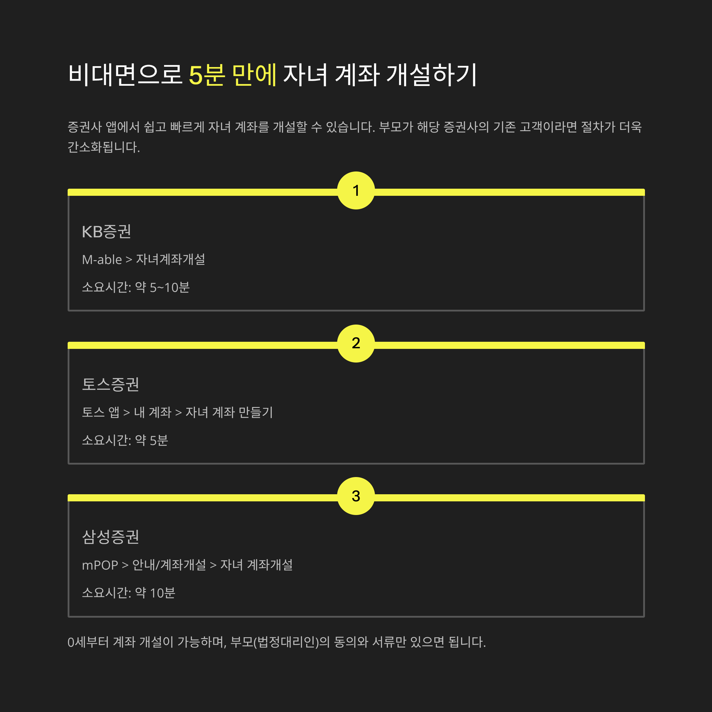 아이 명의로 증권계좌를 만들면 주식, ETF, 펀드 등 다양한 투자 경험을 조기에 시작할 수 있습니다.