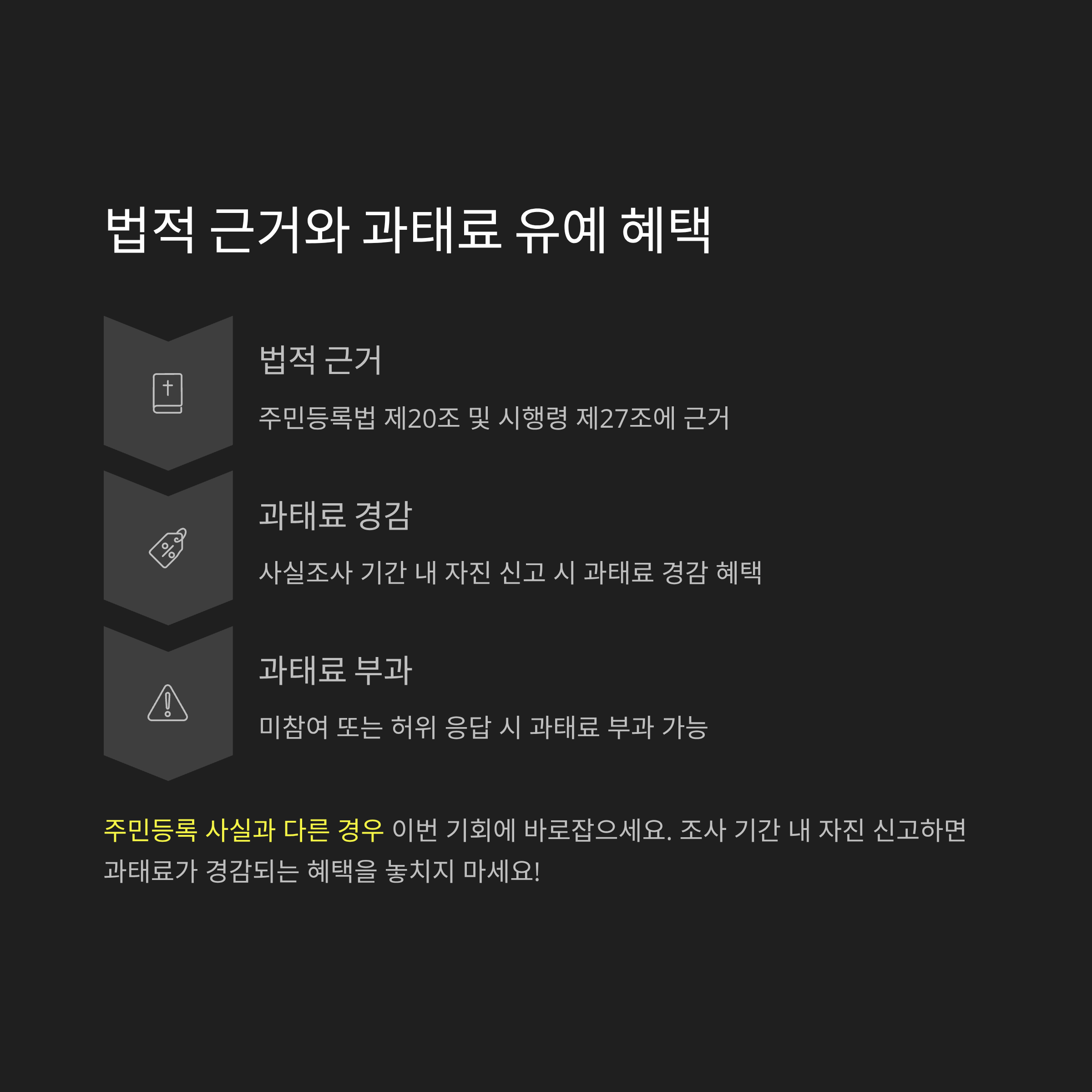 이번 조사는 주민등록법 제20조 및 시행령 제27조에 근거하여 진행됩니다.