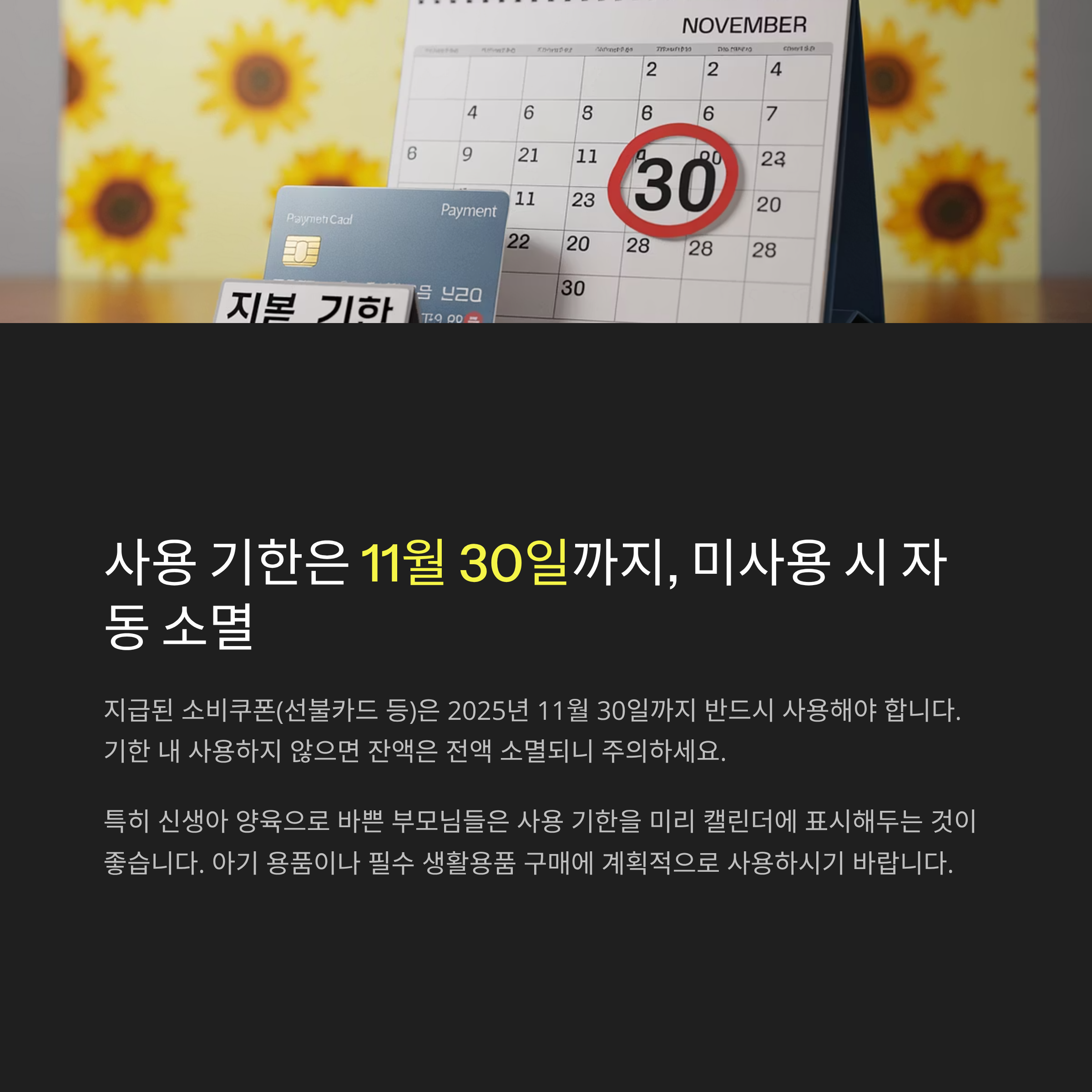 지급된 소비쿠폰(선불카드 등)은 2025년 11월 30일까지 사용해야 하며,