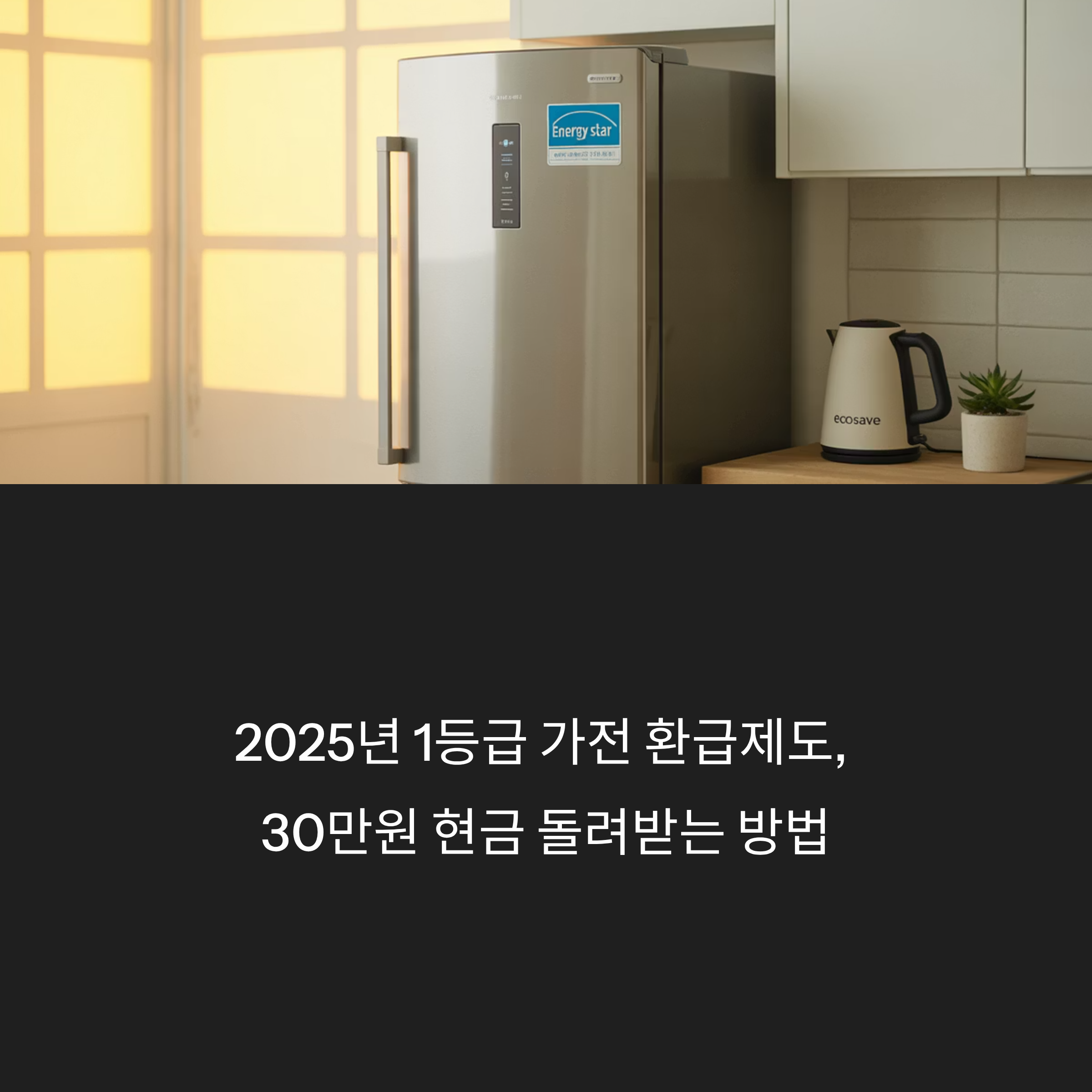 대한민국 정부가 2025년 7월 4일부터 시행 중인 ‘1등급 가전 환급제도(으뜸효율 가전 환급사업)’는 고효율 가전제품을 구매하는 소비자에게 구매가의 10%, 최대 30만원을 돌려주는 정책입니다.