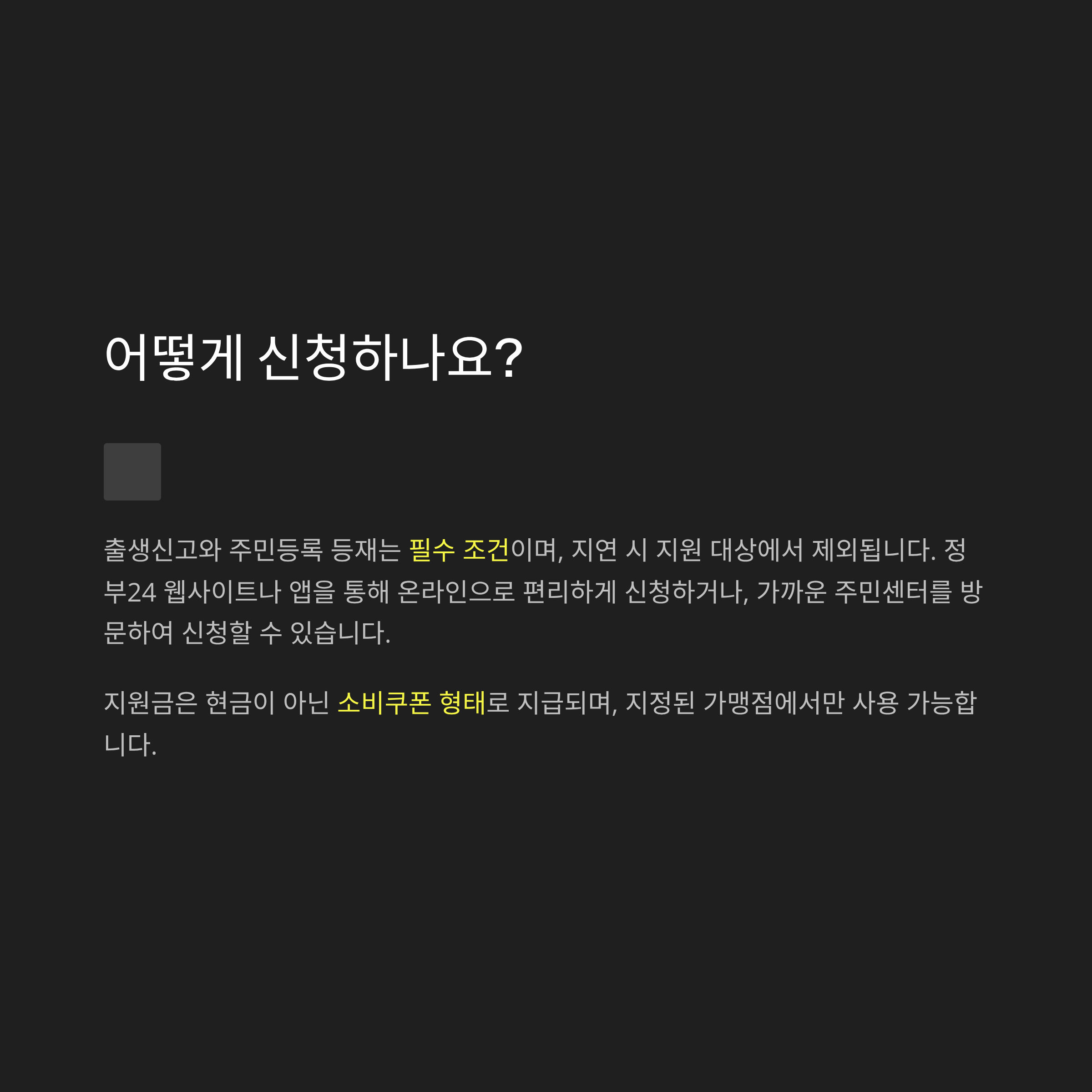 • 출생신고일 기준이 9월 12일 이내여야 1차 지급 대상