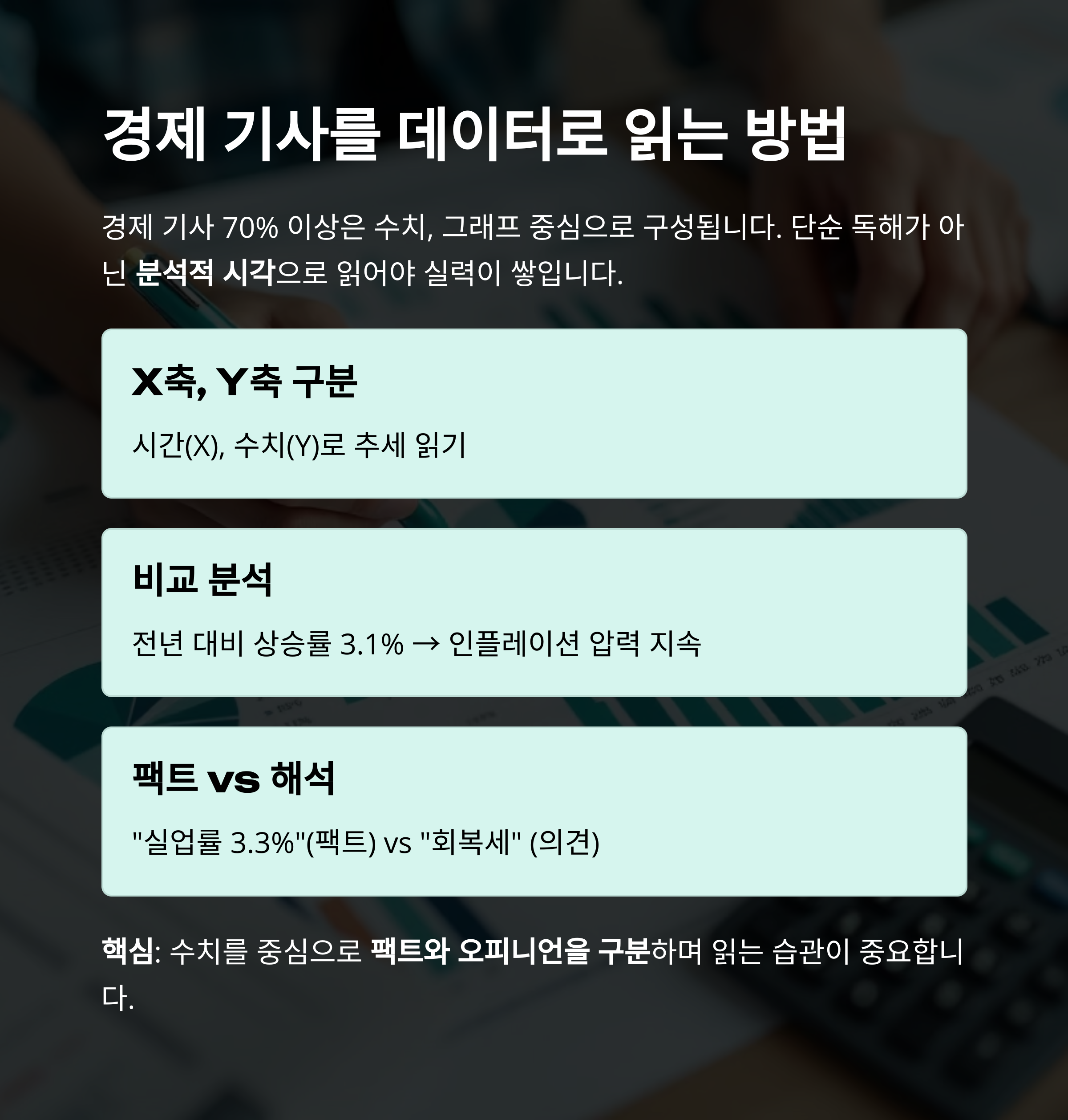 핵심: 수치를 중심으로 팩트와 오피니언을 구분하며 읽는 습관이 중요합니다.