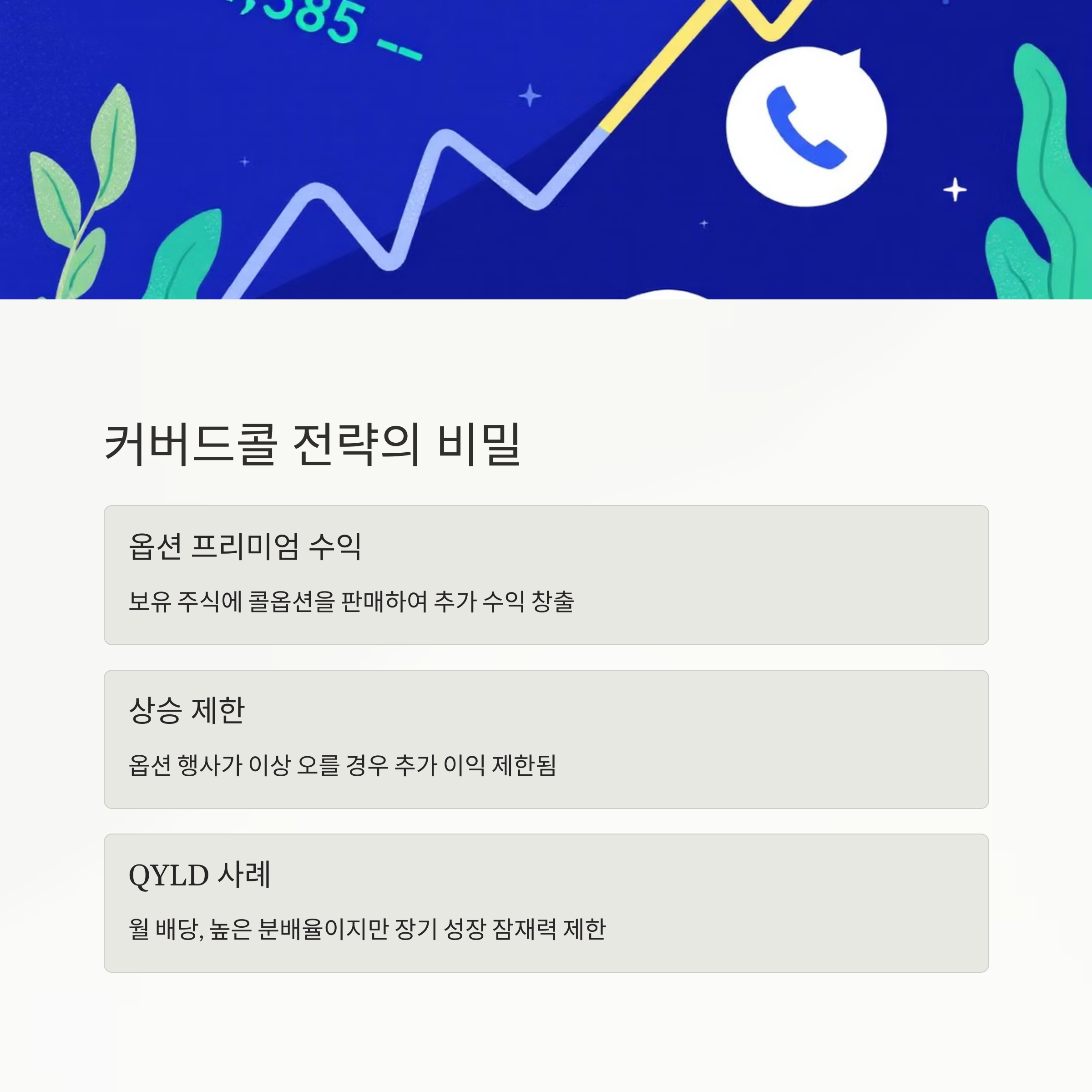 | 커버드콜 전략 | 옵션 매도로 수익 확보하지만 상승장에서는 수익 제한 |
