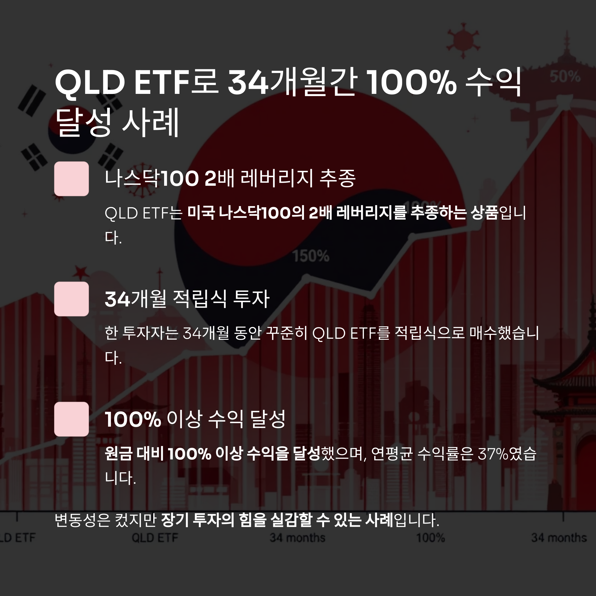 고수익 사례: QLD ETF로 34개월간 100% 수익 달성