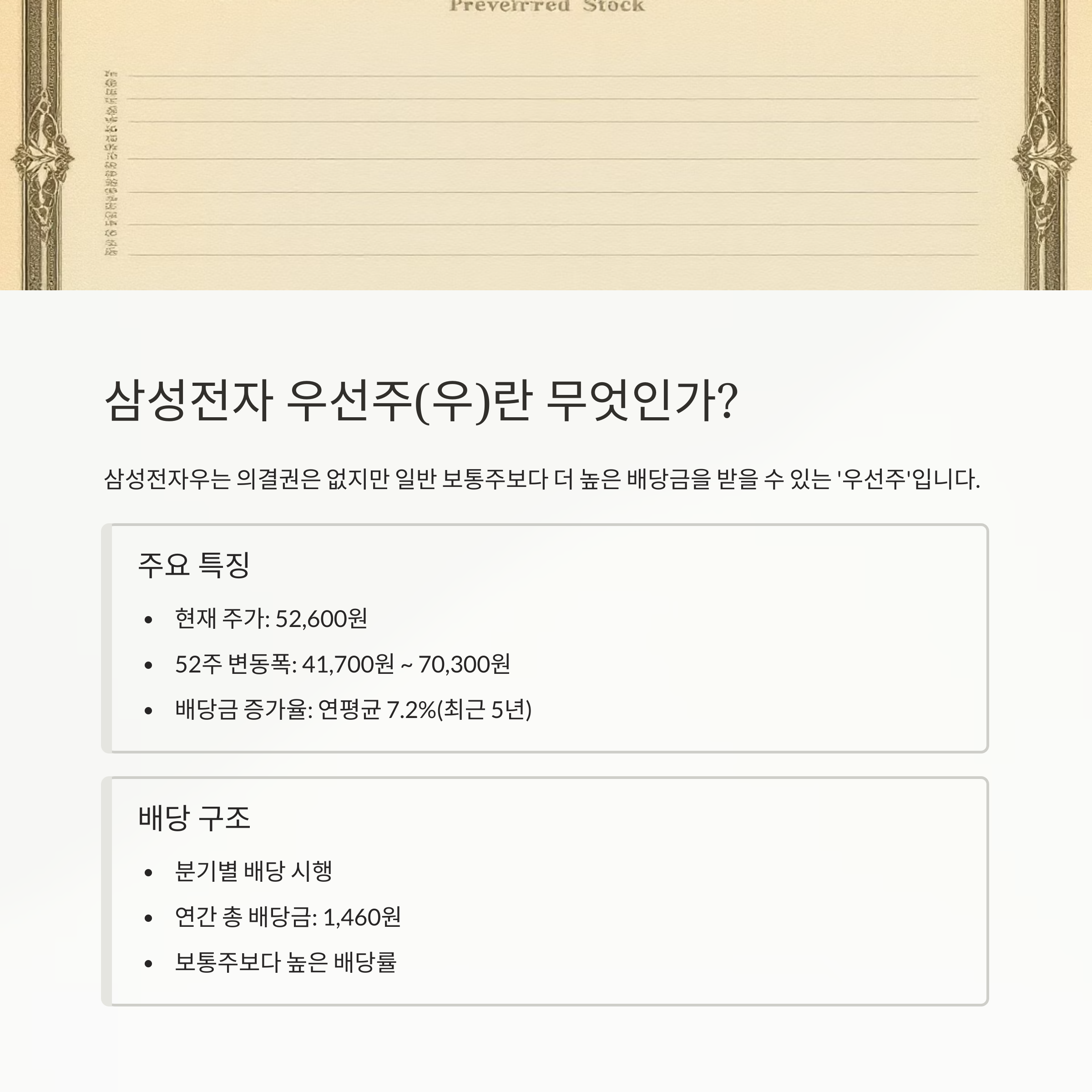 2025년 7월 기준 데이터를 토대로 삼성전자우의 배당 수익 구조를 살펴보고, 현실적인 투자 전략과 유의할 점까지 정리해드립니다.