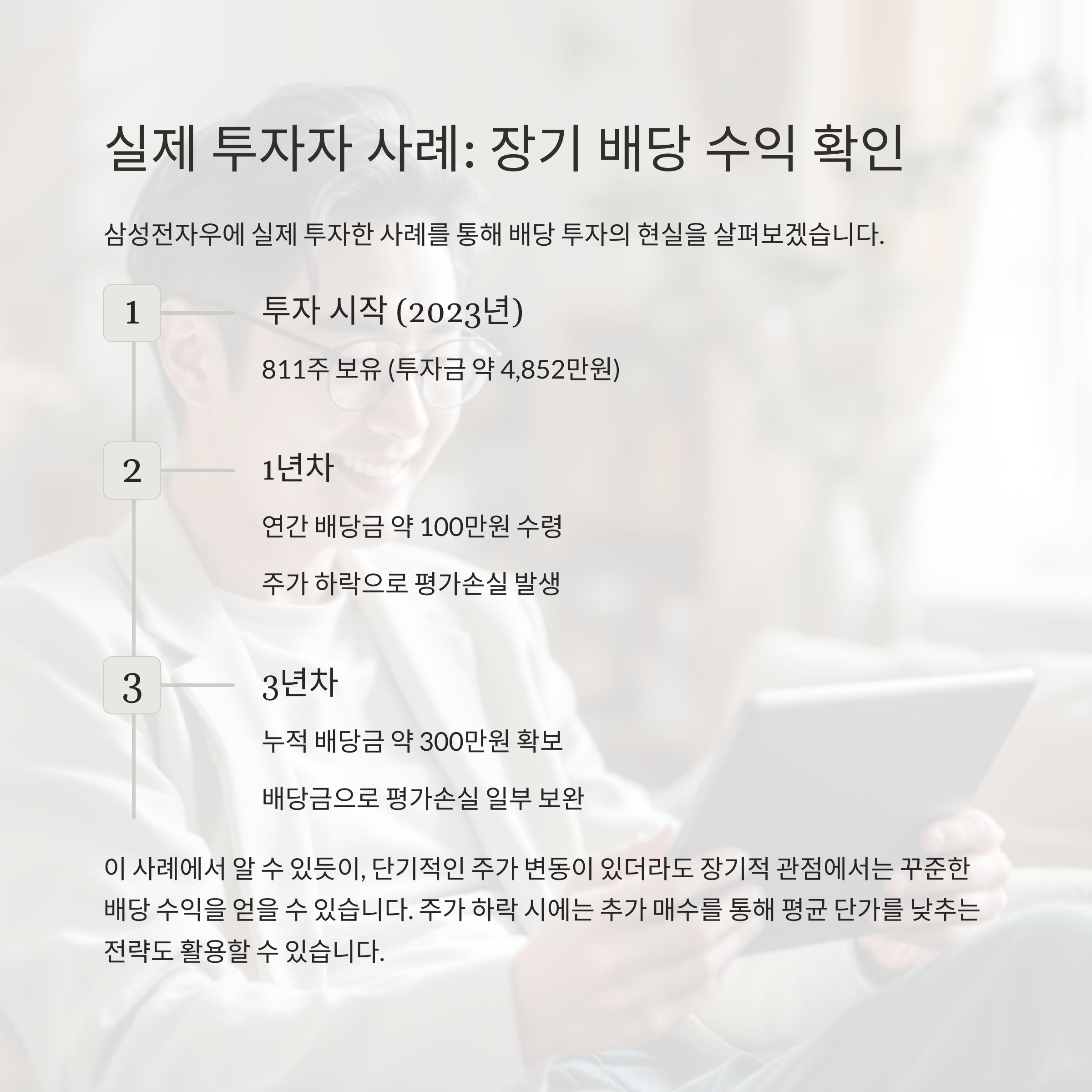 이후 3년간 분기 배당금을 꾸준히 수령하며 실질 수익을 확보했습니다.