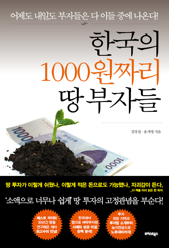 아직도 1,000원짜리 땅 투자 가능한가? ... 부동산은 물론 경제 전반에 대하여 평상시 꾸준하게 관심을 갖고 흐름을 파악해야 한다. 다음으로는, 푼돈이라 생각되는 돈일지라도 한푼 두푼 아끼고 모아서 종자돈 즉 투자자금을 마련해야 한다. 끝으로, 기회가 오면 투자를 실천하고 자식 키우듯이 잘 보듬고 가꾸고 키워서 꾸준하게 수익을 얻어야 하며, 그 땅을 달라고 간청하는 사람들에게 넘겨주고 자산 이득을 취해야 한다. |