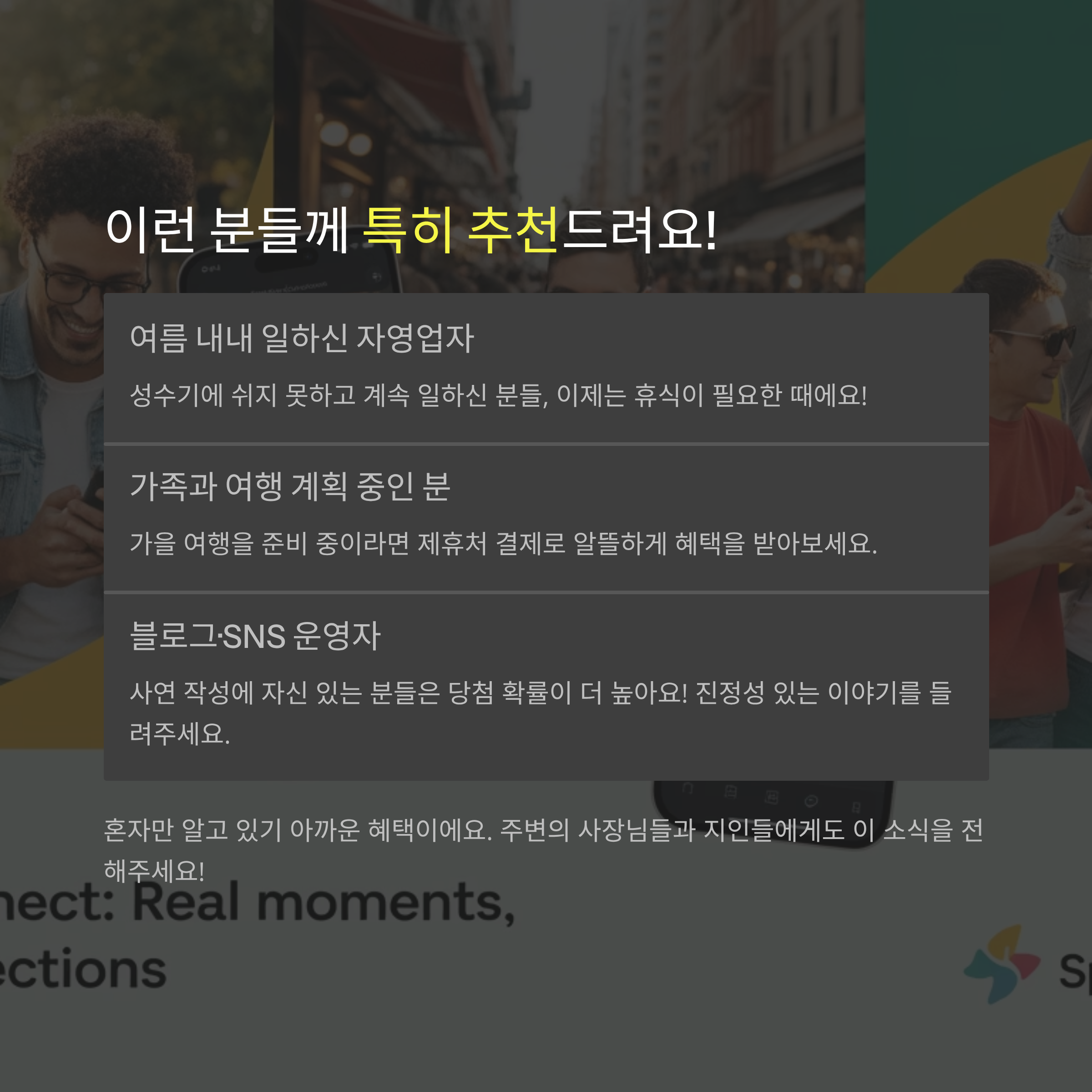 이번 이벤트는 단순한 휴가비 지원을 넘어서, 소상공인의 삶에 ‘휴식’이라는 권리를 선물하는 캠페인이에요.