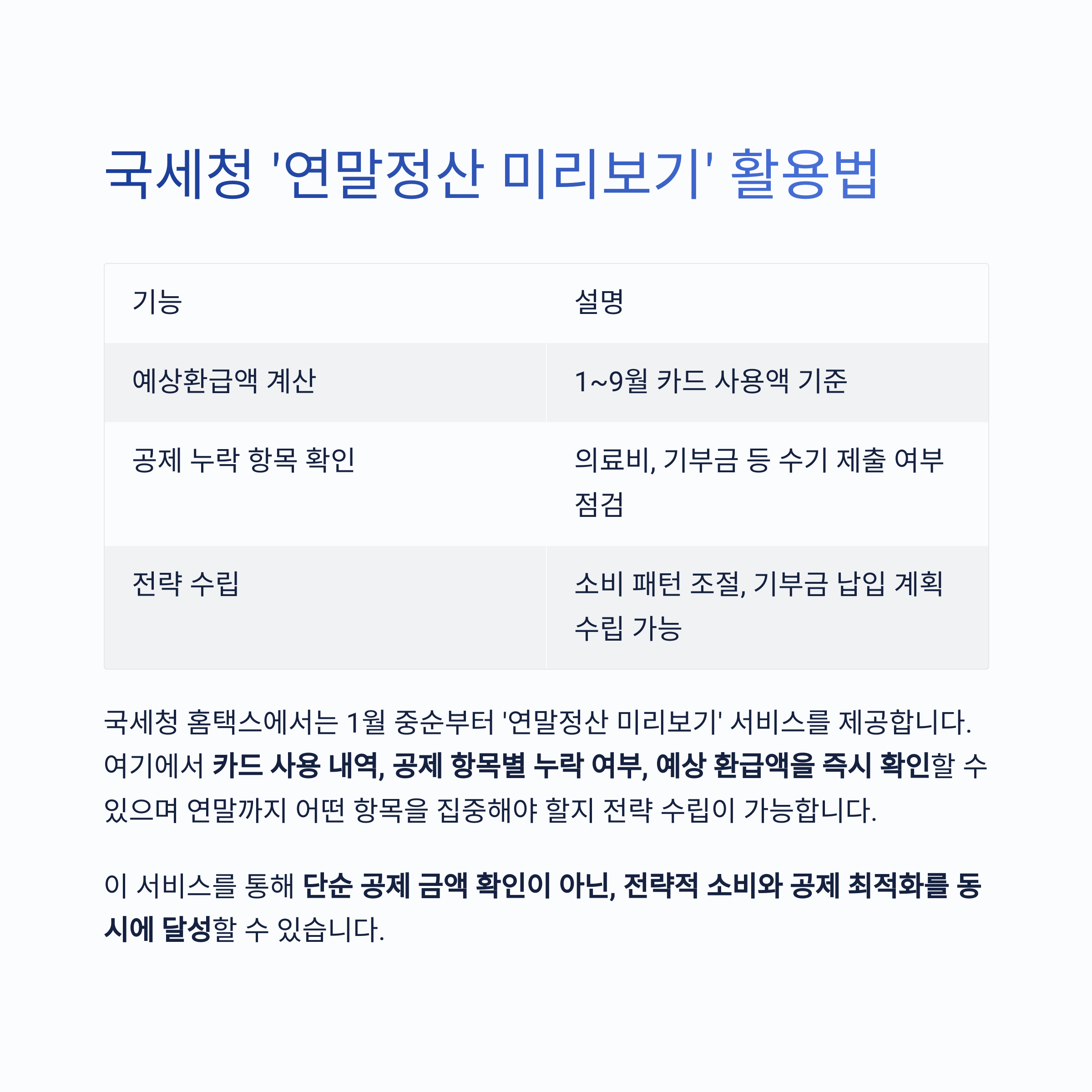 특히 카드 사용 비율 조절, 인적공제 최적화, 연금 납입 타이밍 등 핵심 전략을 실행하면