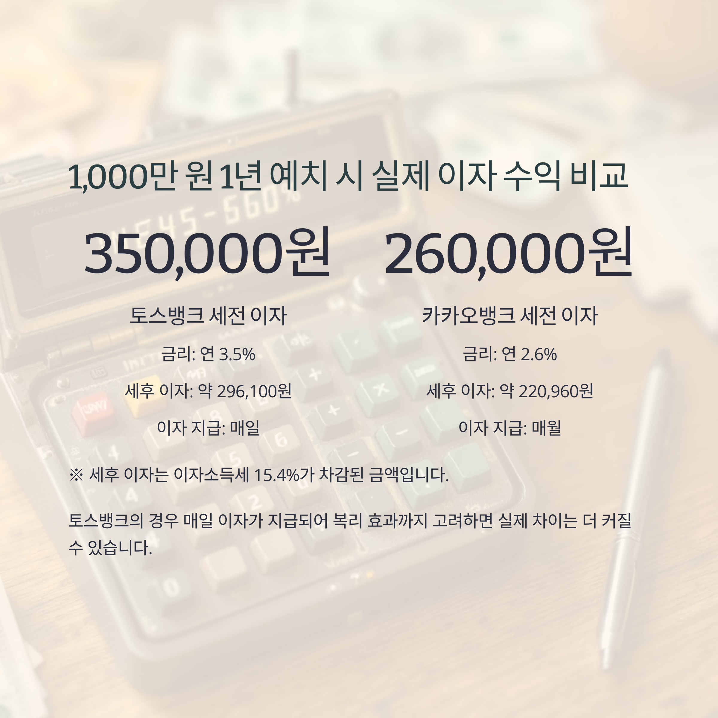 실제 이자 수익 비교: 1,000만 원을 1년 예치하면?