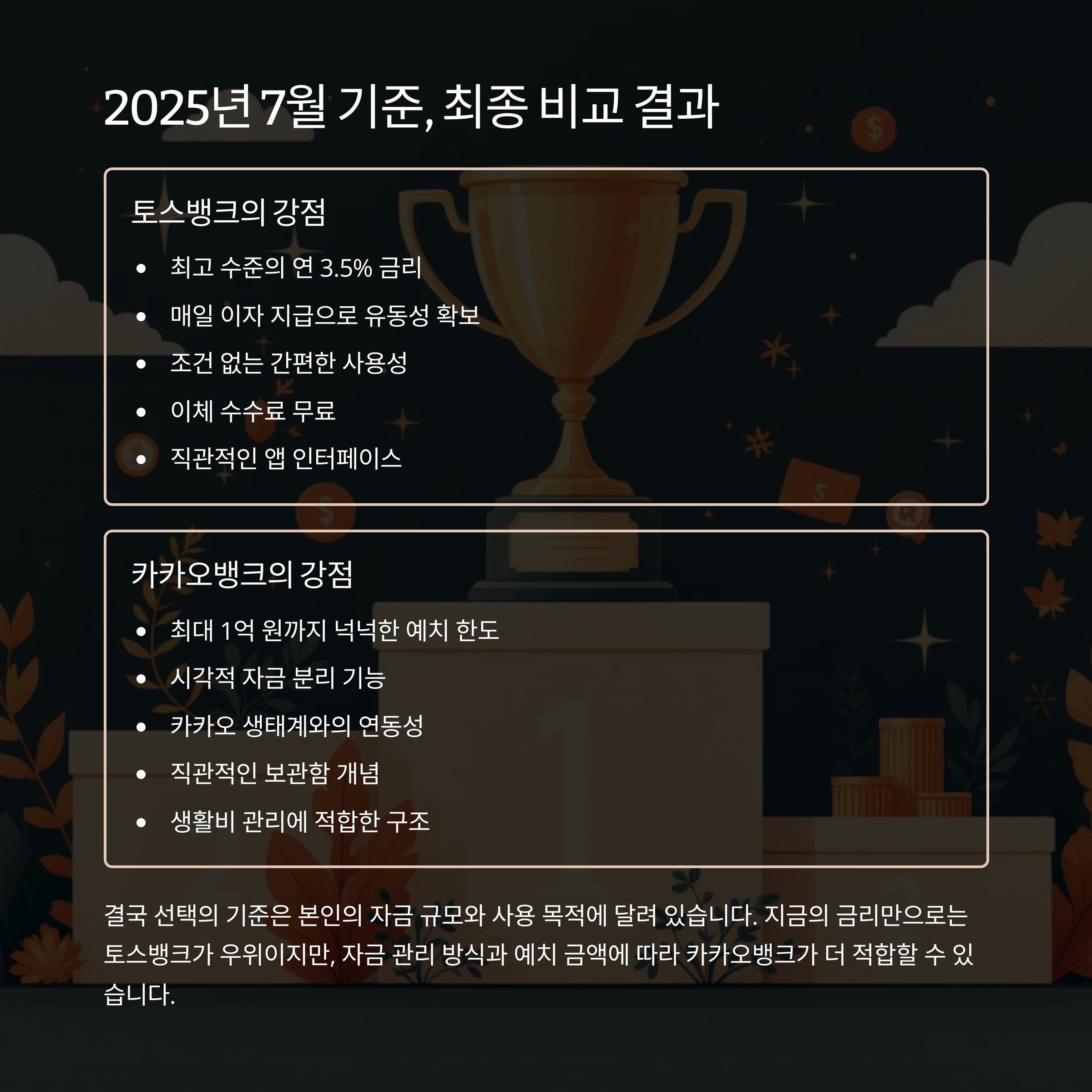 결론: 고금리와 유연성, 현재는 토스뱅크에 한 표