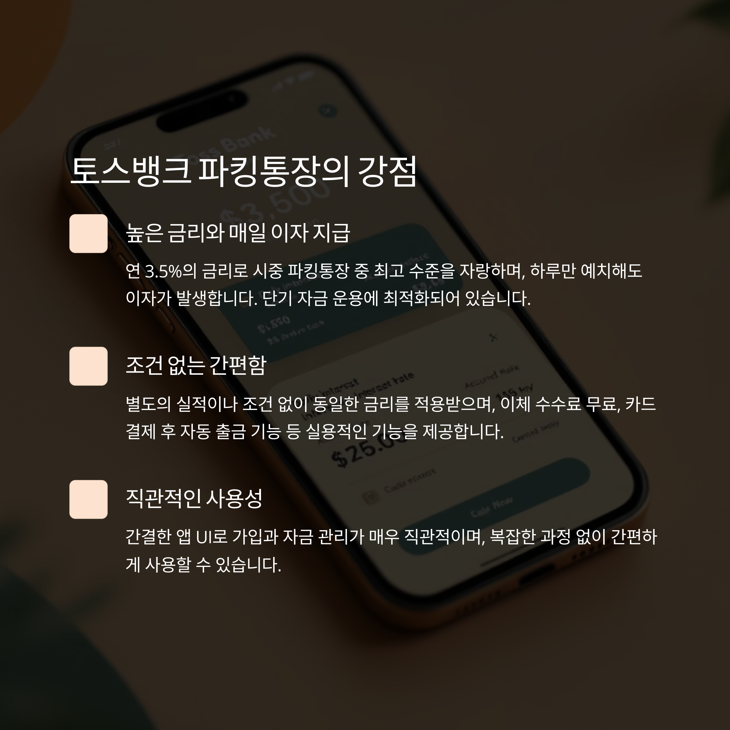 | 매일 자금 운용 필요 | 토스뱅크 | 매일 이자 지급, 조건 없음 |