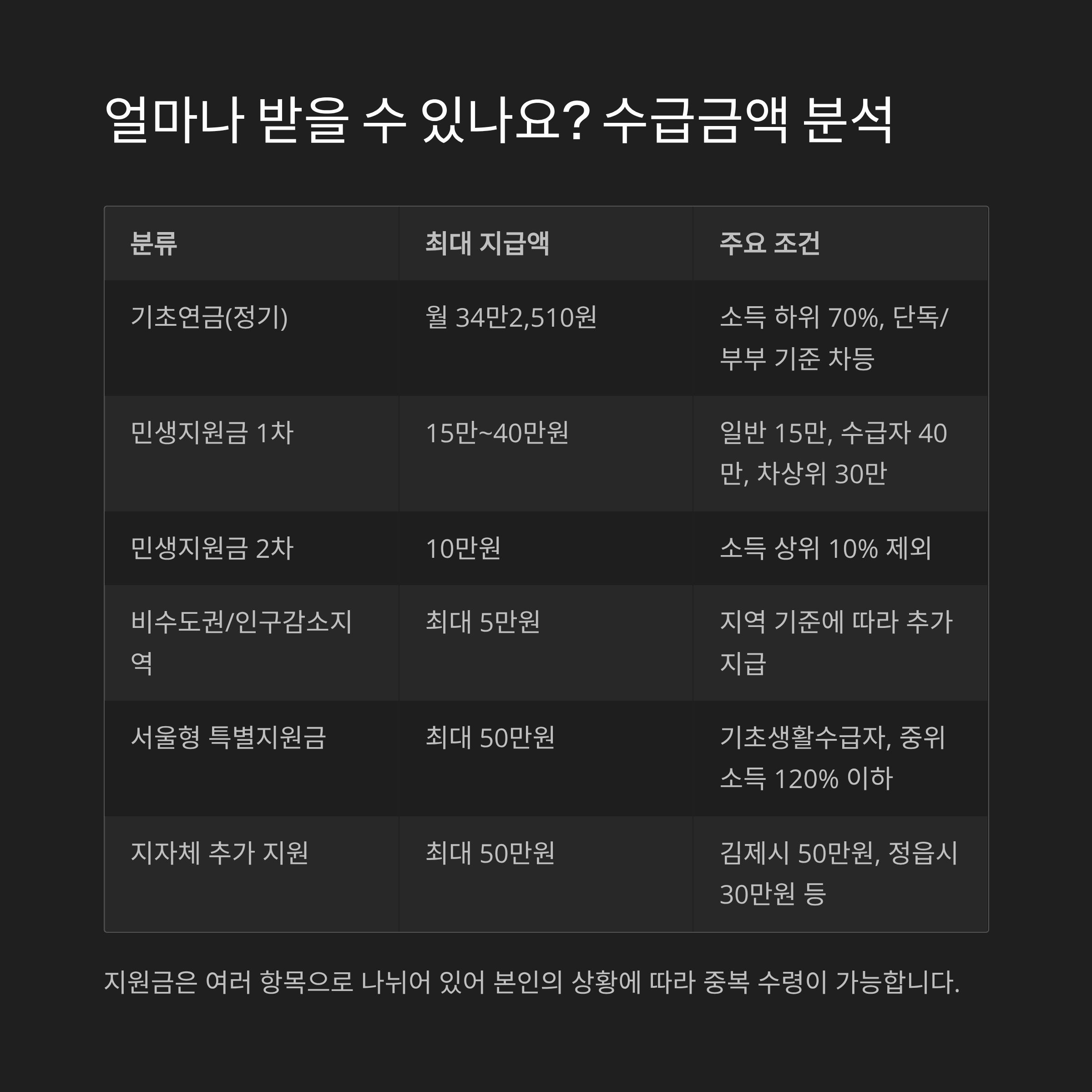 정확한 수급금액, 신청 방법, 대상 제외 조건 등을 사례 중심으로 꼼꼼히 확인해 보시기 바랍니다.