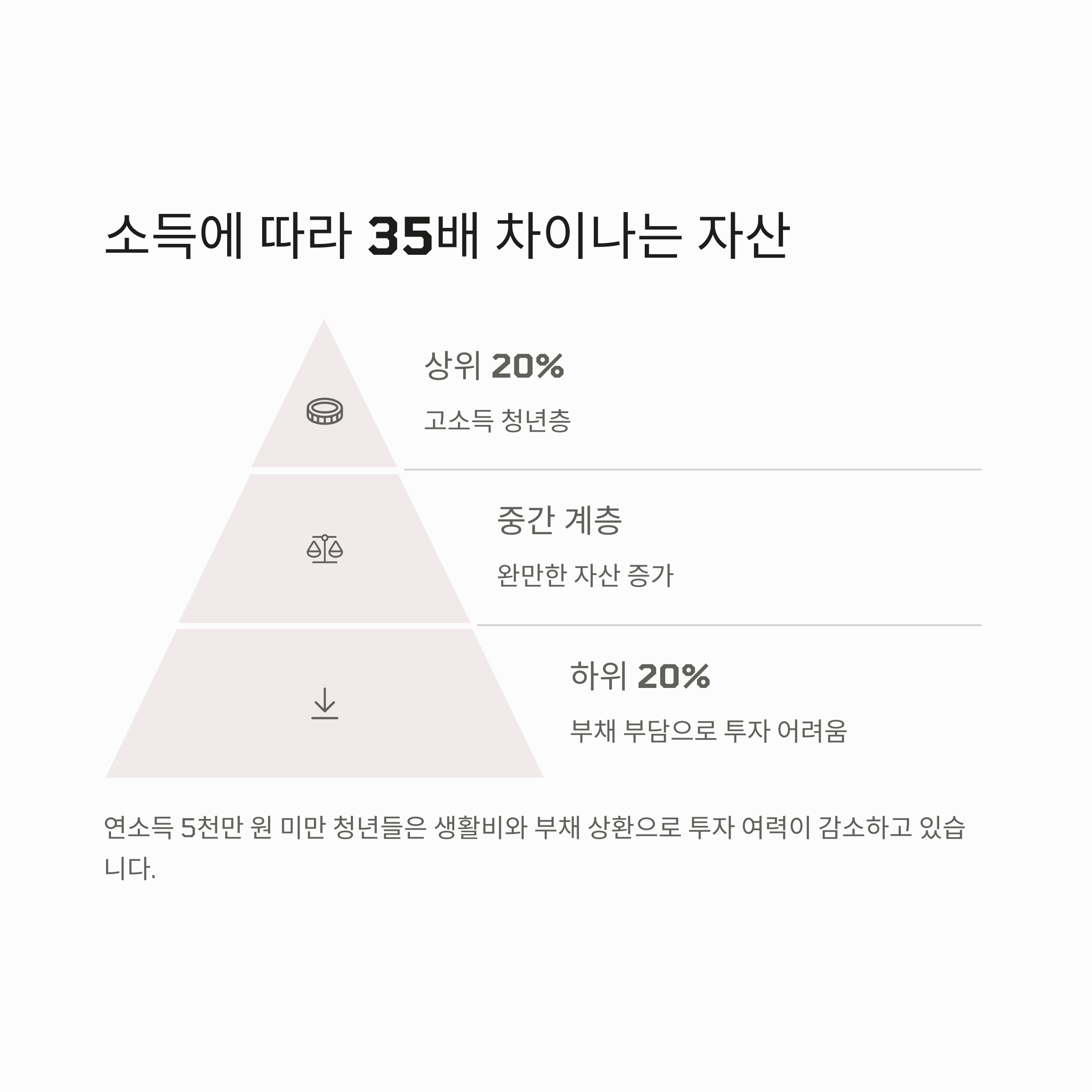 | 자산 격차의 현실 | 상위 20%와 하위 20% 자산 격차는 최대 35배에 달합니다. |