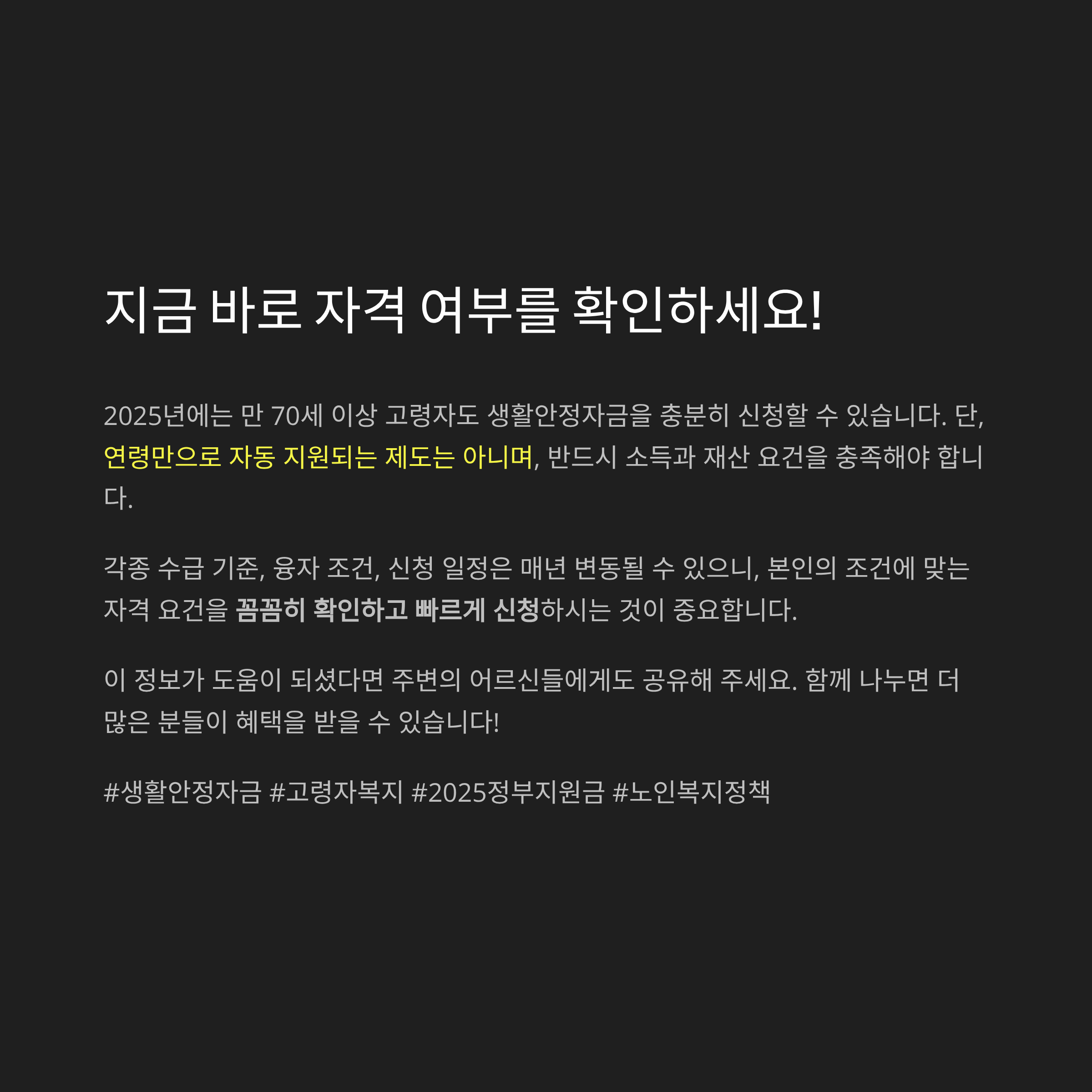 2025년에는 만 70세 이상 고령자도 생활안정자금을 충분히 신청할 수 있습니다.