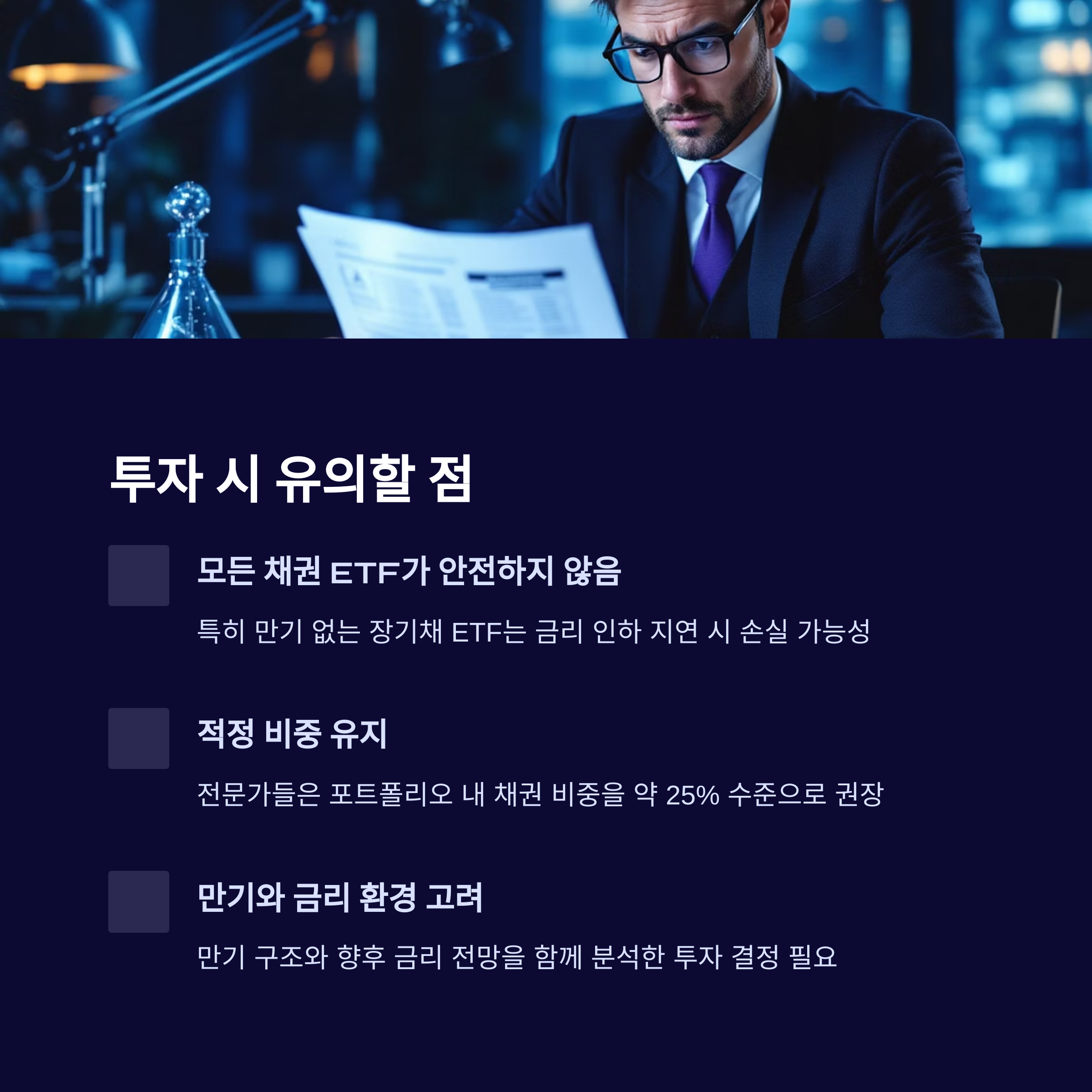 특히 만기 없는 장기채 ETF는 금리 인하가 지연되면 손실 가능성도 있습니다.