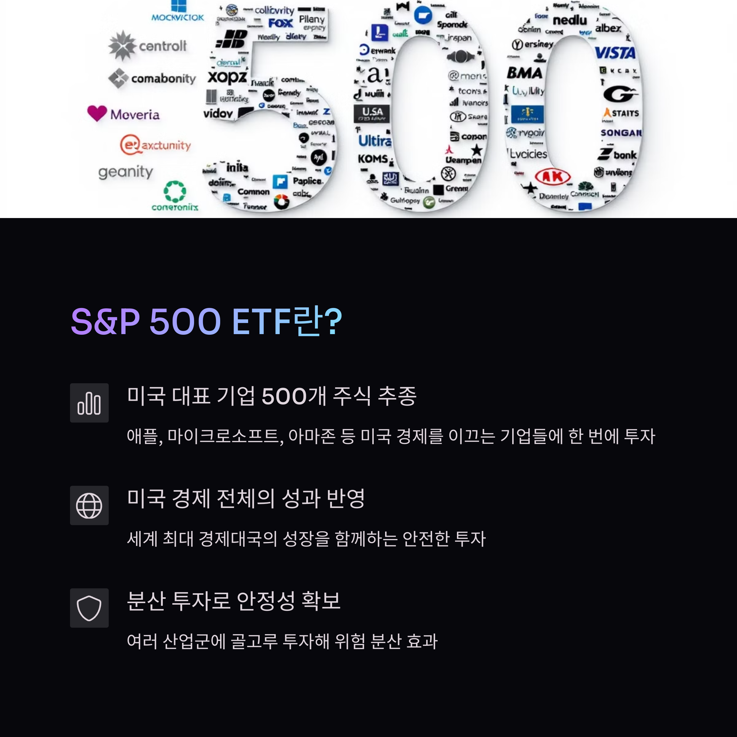 S&P 500 ETF는 미국의 대표 주가지수인 S&P 500을 기반으로 한 투자 상품입니다.