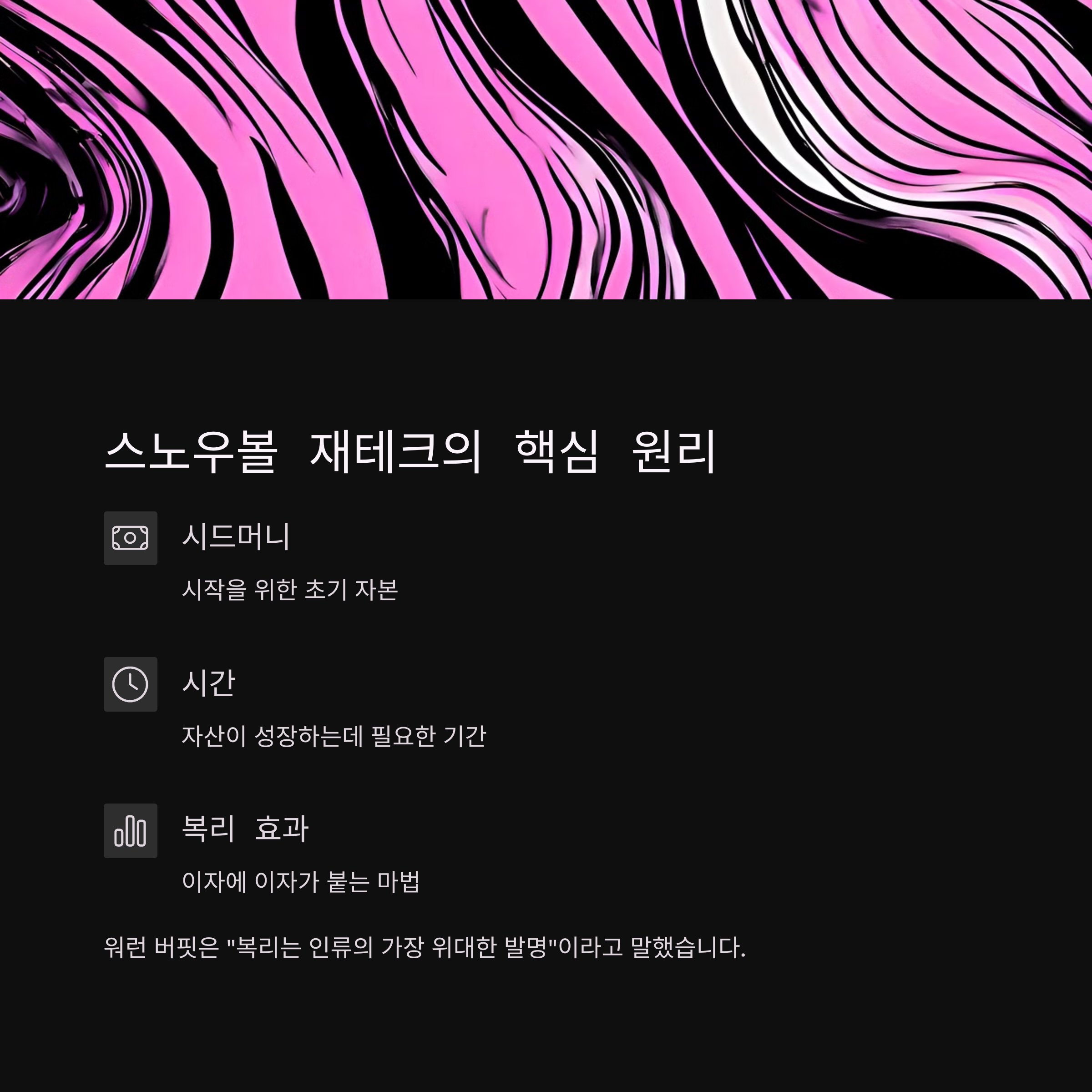 "작은 눈송이가 언덕 아래로 굴러가며 커다란 눈덩이로 변하듯, 자산도 그렇게 커질 수 있습니다."